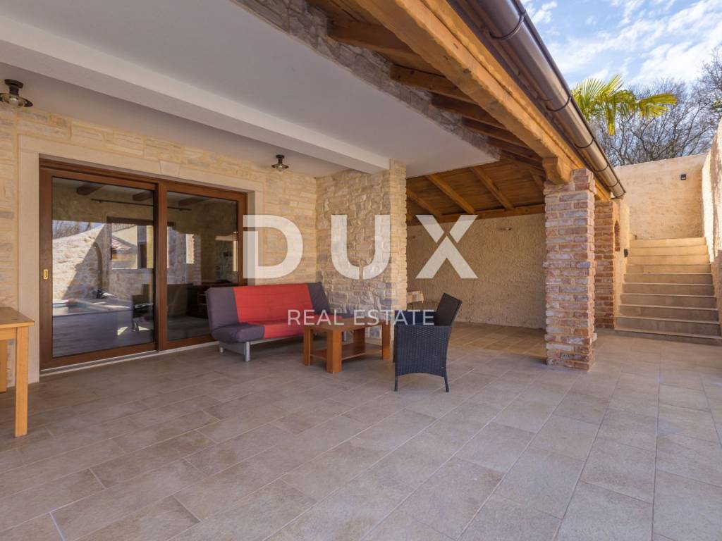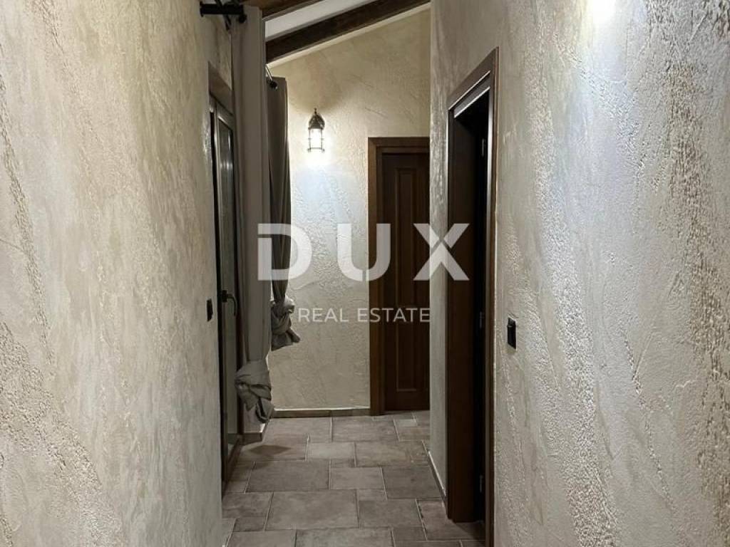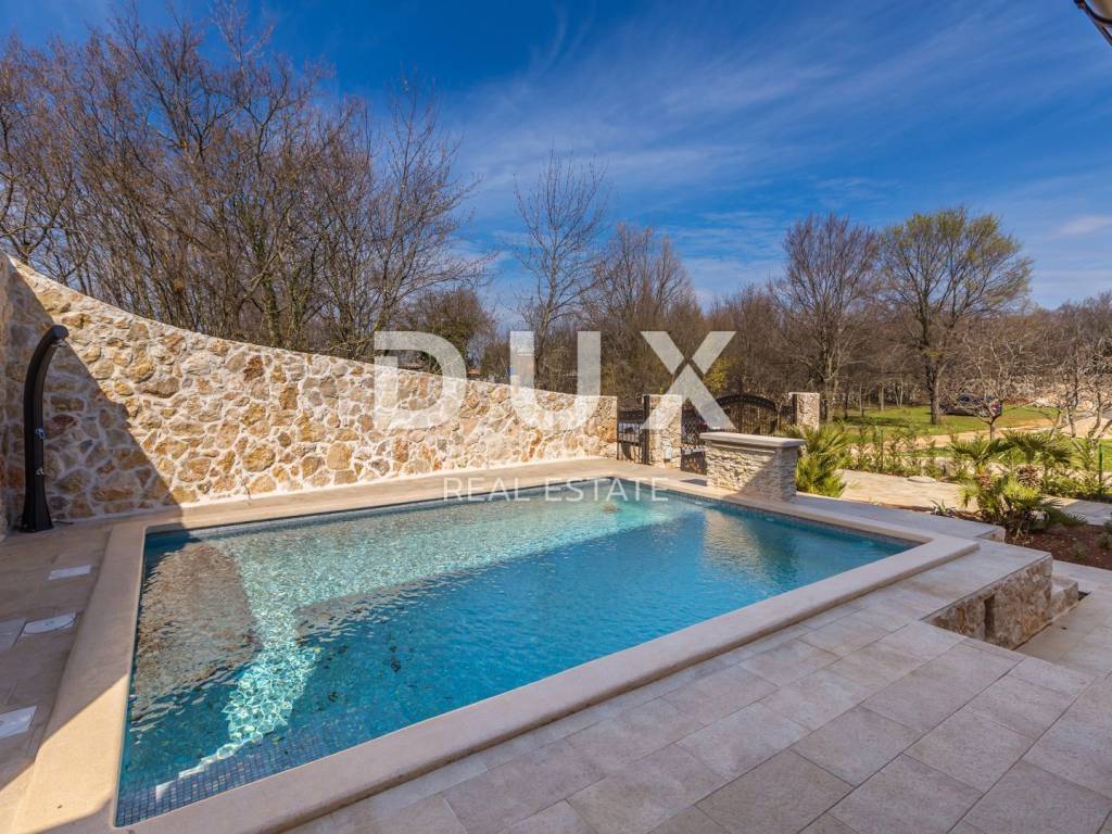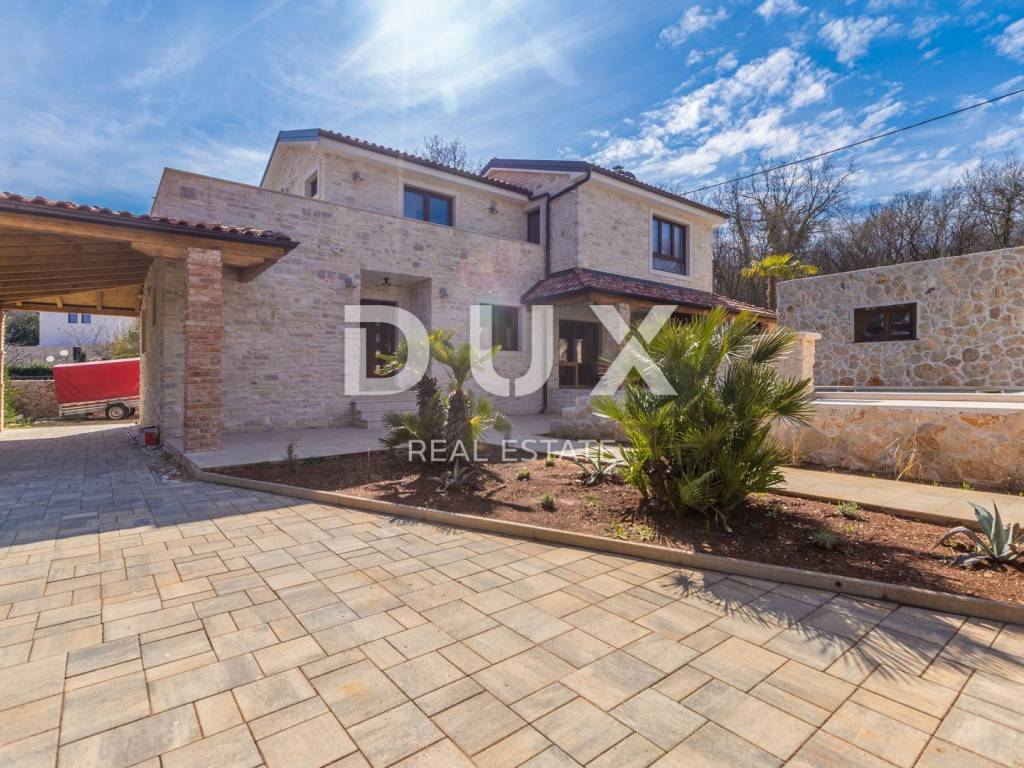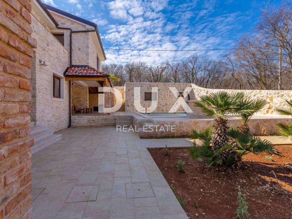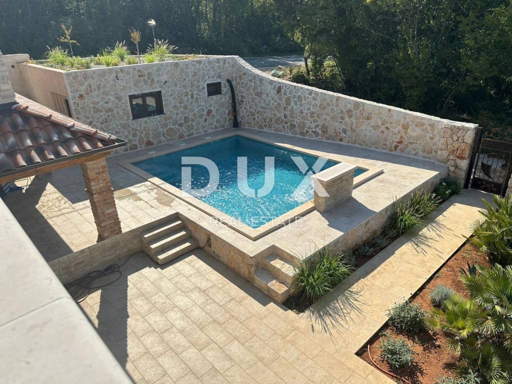Diese schöne Steinvilla hat eine Gesamtfläche von 220 m2, von denen etwa 150 im Hauptgebäude bewohnt sind. Im Erdgeschoss des Gebäudes befinden sich ein Badezimmer, ein Schlafzimmer, ein Badezimmer und eine Küche mit einem Esszimmer und einem Wohnzimmer, das sich auf eine überdachte Terrasse und einen wunderschön angelegten Garten mit beheiztem Pool öffnet. Im Garten gibt es drei Parkplätze und ein Nebengebäude aus Stein von ca. 30 m2, das als Taverne dekoriert ist. Es hat auch einen Maschinenraum vom Pool. Im ersten Stock befinden sich zwei Schlafzimmer und zwei Badezimmer sowie eine nicht überdachte Terrasse. Das Haus wurde mit hochwertigen Materialien mit maßgefertigten massiven Eichenmöbeln gebaut. Das Haus verfügt über eine Fußbodenheizung und einen Kamin sowie eine Wärmepumpe. Die Villa befindet sich in ruhiger Lage, umgeben von viel Grün. Auf der Ostseite der Insel Krk liegt die Gemeinde Dobrinj mit dem gleichnamigen Zentrum. Dobrinj liegt auf einem etwa 200 Meter hohen Hügel und ist eine der mittelalterlichen Burgen, die in der Vergangenheit Zentren der Alphabetisierung waren. Dobrinjština war jahrhundertelang eine äußerst landwirtschaftlich geprägte Region. Auch Viehzucht und Olivenanbau sowie die Ausbeutung des Waldreichtums waren vertreten. Der Ort ist auch für seine farbenfrohen Volkstrachten, Folkloreveranstaltungen, die Sopela-Schule (Blasinstrument von Krk) und die traditionelle lokale Küche bekannt. In diesem Inselzentrum herrschen autochthone Steinhäuser und schmale Steinstraßen vor, die an die Vergangenheit erinnern. Unweit von Dobrinje befindet sich die Höhle Biserujka, die mit ihrer Schönheit und interessanten ausgefällten Formen begeistert. Es ist die einzige Höhle auf der Insel, von der es mehr als 50 gibt, die für Besucher bestimmt ist. Der Legende nach wurde die Höhle Biserujka (Perle) nach dem darin gefundenen Schatz benannt, der örtlichen Piraten gehörte.