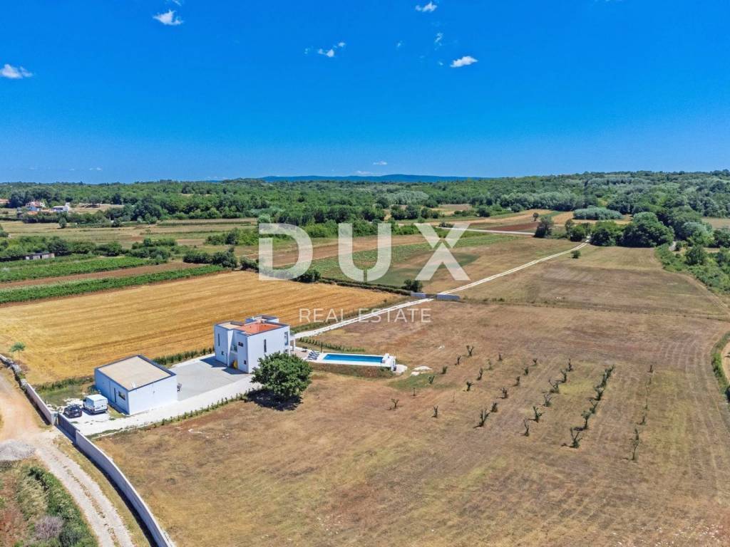 Marčana ist eine Gemeinde im Südosten der Halbinsel Istrien. Es liegt etwa 12 km nordöstlich von Pula, der größten Stadt Istriens. Es ist bekannt als Ziel für das Meer, Urlaub, Wein und Olivenöl. Es ist eine kulturell reiche Siedlung mit kristallklarem Meer und einer fast unwirklichen Landschaft, die aus wunderschönen Buchten und grünen Halbinseln besteht. Seine 36 Kilometer lange Küste ist die am wenigsten urbanisierte Küstenzone in Istrien. Marčana und seine fruchtbaren grünen Felder mit sanften Hügeln, die zu versteckten Felsbuchten und abgelegenen Dörfern und Städten abfallen, sind ein unentdeckter Schatz der Ostküste Istriens. In einer der Siedlungen der Gemeinde Marčana, umgeben von Ruhe und Grün, steht ein komfortables Haus mit einem imposanten Garten zum Verkauf. Diese perfekt integrierte Eigenschaft bietet maximalen Komfort. Ein zeitgemäßes Haus mit hochwertiger Ausstattung und modernem Design erstreckt sich über Erdgeschoss und Obergeschoss. Im Erdgeschoss befinden sich Gesellschaftsräume; ein großes Wohnzimmer mit Küche und Esszimmer in einem offenen Konzept mit Zugang zu einer überdachten Terrasse mit Außenkamin, ein Schlafzimmer, das auch ein Studio-Apartment mit eigenem Bad und Eingang ist, und eine Gästetoilette. Im Obergeschoss befinden sich drei Schlafzimmer, zwei Badezimmer und zwei Terrassen. Das Hauptschlafzimmer hat ein eigenes Badezimmer, Ankleideraum und Büro mit Zugang zu einer eigenen Terrasse. Das Haus ist mit Gebläsekonvektoren zum Heizen und Kühlen und einer Fußbodenheizung ausgestattet, die an eine Wärmepumpe angeschlossen ist. Die neben dem Haus gelegene Nebeneinrichtung besteht aus einer geräumigen Garage für drei Fahrzeuge mit Ladestation für Elektrofahrzeuge, einem Aufenthaltsraum mit Fitnessraum und einer Toilette. Neben dem Haus befindet sich auch ein beheizter Pool von 48 m mit gepflasterter Liegewiese. Der Hof ist komplett eingezäunt, beleuchtet und im mediterranen Stil dekoriert, der durch einen alten Olivenbaum ergänzt wird. Das Anwesen ist komplett möbliert und ausgestattet und wird als solches verkauft. Die Mehrwertsteuer ist im angegebenen Preis enthalten und die Grundumsatzsteuer ist nicht zu entrichten. Die Immobilie ist umsatzsteuerpflichtig und wird mit dem gesamten Eigentum an der Gesellschaft verkauft. Die außergewöhnliche Alleinlage, dennoch unweit aller lebensnotwendigen Annehmlichkeiten, sowie die Qualität der Bauweise und Ausstattung, bietet Liebhabern von Intimität, Ruhe und Natur eine ideale Möglichkeit für das Familienleben oder eine Investition in ein bereits etabliertes touristisches Vermietungsgeschäft mit hervorragende Auslastung.
