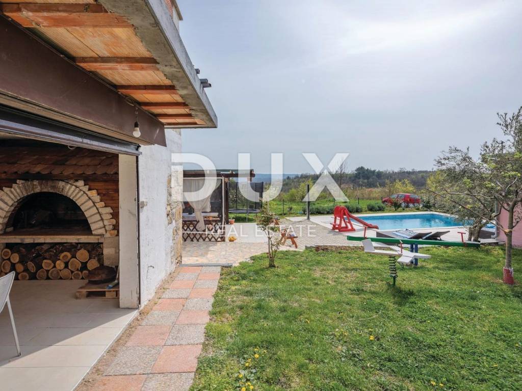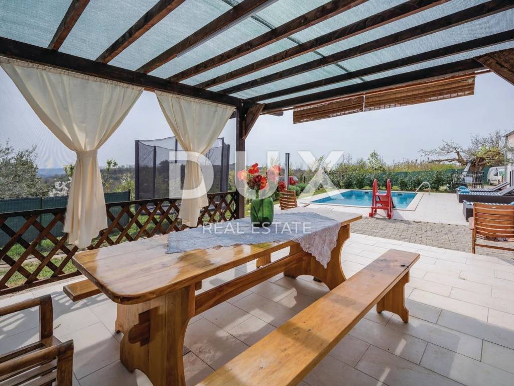 Das idyllische Brtonigla liegt im nordwestlichen Teil der Halbinsel Istrien. Es liegt auf einem 141 m hohen Hügel, umgeben von Weinbergen und Olivenhainen. Tatsächlich liegt die Gemeinde Brtonigla auf vier Ländern, was bedeutet, dass alle in Istrien vorkommenden Bodenarten auf dem Gebiet der Stadt vorhanden sind, was in Istrien ein einzigartiger Fall ist. Die Gemeinde Brtonigla erstreckt sich über eine Fläche von 33 km und erstreckt sich entlang der Meeresküste und im grünen Landesinneren Istriens. Wunderschöne grüne Weinberge und Olivenhaine, umgeben von Wegen, Weinkeller mit erstklassigem Wein und traditionellen istrischen Köstlichkeiten, die den Gaumen verführen, sowie Naturparks und Höhlen und eine wunderschöne Flora und Fauna, die versteckte Straßen durch Wiesen und Wälder bieten, die zu wunderschönen Stränden führen In nur wenigen Minuten mit einem kristallklaren Meer ist das fotogene Brtonigla eine Kombination aus Hedonismus und Abenteuer. Brtonigla und seine Umgebung sind eine harmonische Mischung aus Meer, Weinbergen, Olivenhainen, Feldern, Flüssen und Wäldern mit malerischen und stolz dekorierten Siedlungen. Unweit von Brtonigla steht ein Haus mit Panoramablick zum Verkauf. Das Haus mit einer Fläche von 220 m erstreckt sich über Keller, Erdgeschoss und Obergeschoss. Im geräumigen Keller befinden sich eine Küche, ein Raum für Geselligkeit und Erholung, eine Toilette und ein Abstellraum. Das Erdgeschoss besteht aus einem Wohnzimmer, einem Esszimmer, einer Küche, einer Toilette und einer großzügigen Terrasse, während sich im ersten Stock drei Schlafzimmer, ein Badezimmer und eine Terrasse befinden. Der Garten ist begrünt und verfügt über einen 30 m großen Swimmingpool mit gepflastertem Sonnendeck, eine überdachte Sommerküche mit offenem Kamin, einen Pavillon und einen Kinderspielplatz. Ideale Immobilie für das Familienleben oder als Investition zur Vermietung für touristische Zwecke.