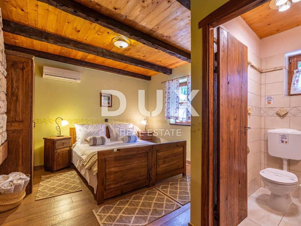 Die Steinvilla neben dem Haus wurde im rustikalen Stil erbaut und versprüht mediterranen Charme. Das schöne Erdgeschoss besteht aus einem geräumigen Wohnzimmer, einem Esszimmer und einer Küche mit Kamin. Hier gibt es auch eine zusätzliche Toilette sowie zwei Schlafzimmer mit angeschlossenem Badezimmer. Alle Zimmer sind klimatisiert, und WIFI-Internetzugang sowie Satellitenfernsehen sind verfügbar. Im komplett eingezäunten Garten der Villa gibt es einen schönen Swimmingpool, eine Sommerküche und Gartenmöbel mit Pergolen, um Sommerabende zu genießen. Im Hof dieses Gebäudes steht ein Parkplatz mit insgesamt 6 Stellplätzen zur Verfügung.