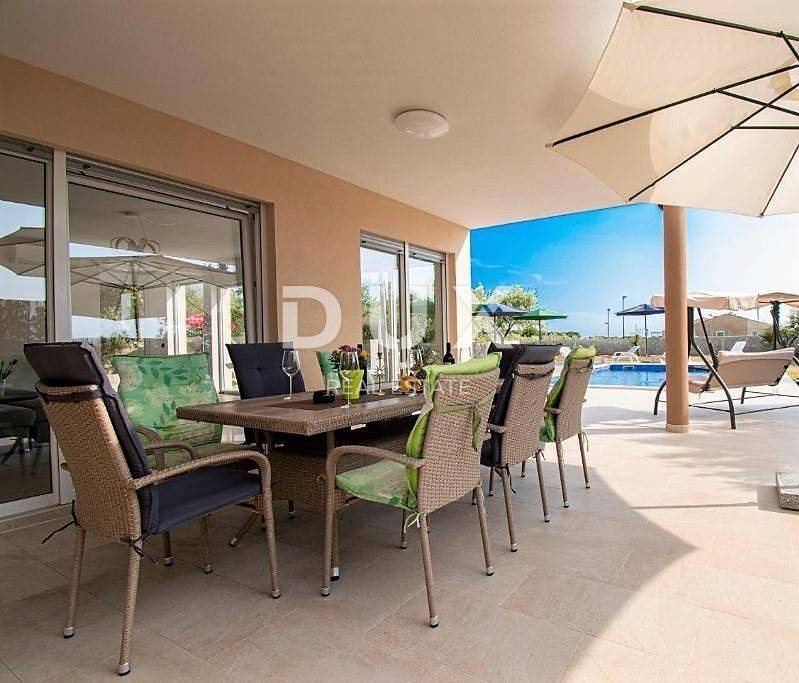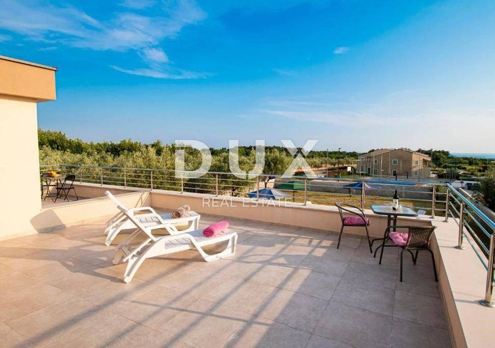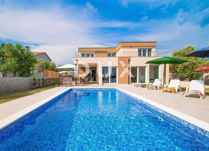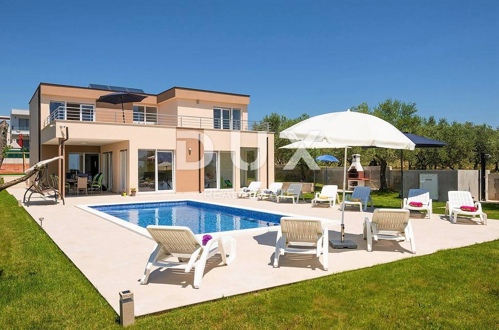 Die elegante Villa mit einer Fläche von 250 m ist als Einfamilienhaus konzipiert. Das moderne Interieur ist geräumig, komfortabel und luftig. Im Erdgeschoss der Villa befinden sich ein Eingangsbereich, ein Badezimmer, ein geräumiges Wohnzimmer, eine Küche mit Essbereich, ein Schlafzimmer mit eigenem Bad und eine überdachte Terrasse. Im Obergeschoss befinden sich drei Schlafzimmer mit eigenem Bad und zwei Terrassen - eine kleinere Terrasse und eine geräumige Terrasse mit Blick auf die Brijuni-Inseln. Das von Olivenbäumen dominierte Gelände der Villa ist vollständig angelegt und eingezäunt. Hervorzuheben ist der 35 m große Pool mit Liegewiese. Es gibt auch einen Kinderspielplatz, einen Grill und Parkplätze im Garten. Außerdem ist laut geplantem Projekt der Bau eines Nebengebäudes mit einer Fläche von 30 m erlaubt, das als Garage oder Taverne genutzt werden kann. Eine Villa mit einem weitläufigen Garten, weit genug von Menschenmassen und Lärm, aber nahe genug am Stadtzentrum, ist eine ideale Immobilie für Familienleben, Ruhe und Entspannung oder als Investition zur Vermietung für touristische Zwecke.
