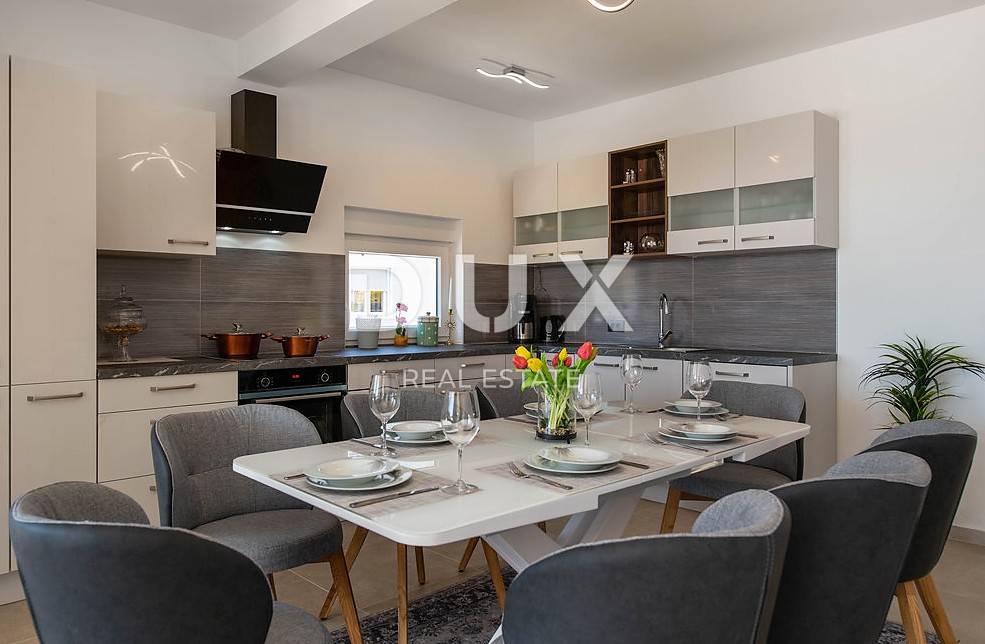 Fotogen Vodnjan, ein mittelalterliches Stadt-Land-Städtchen, liegt im Südwesten Istriens auf 135 Meter über dem Meeresspiegel. Das Gebiet der Stadt Vodnjan nimmt eine Fläche von 102 km ein und umfasst vier Siedlungen: Barbariga, Gajana, Galižana und Peroj. Vodnjan und seine Umgebung sind durch eine einzigartige Kombination aus dem grünen Landesinneren und der blauen Adriaküste vereint. Die charmante Stadt und ihre Umgebung sind vor allem für die Herstellung von wertvollem Olivenöl, die Ölmühle, die die größte in Kroatien und die älteste in Istrien ist, und ihre goldenen Olivenhaine bekannt, in denen bis zu einer halben Million Oliven beheimatet sind Bäume, von denen viele aus dem Römischen Reich stammen. Der Olivengarten ist für viele andere Dinge interessant - ausgezeichnete Weine, die größte Konzentration von Kažun- und Trockensteinmauern auf dem Gebiet Istriens, erkennbare gotisch-venezianische, Renaissance- und Barockstile und zahlreiche Kirchen. In der Stadt Vodnjan gibt es den höchsten Glockenturm Istriens, die kürzeste und schmalste Straße Istriens und die längste Straße Istriens, während einige gewundene Steinstraßen mit farbenfrohen Wandmalereien bemalt sind. Dieses gesamte malerische Gebiet hat ein reiches kulturhistorisches immaterielles und materielles Erbe, eine geschützte Umwelt, sauberes Meer und gut gepflegte Strände, eine entwickelte Geschäfts- und Tourismusinfrastruktur, einen infrastrukturell und gärtnerisch eingerichteten Raum und eine gemeinschaftliche und soziale Sensibilität der Bevölkerung und ein fantastisches Potenzial bei der Entwicklung einer ganzen Reihe von Aktivitäten. In einer ruhigen Straße in Vodnjan steht eine moderne Villa mit großem Garten zum Verkauf.