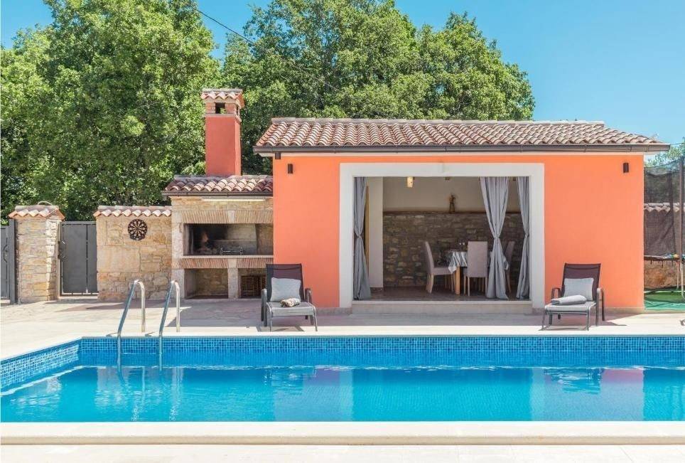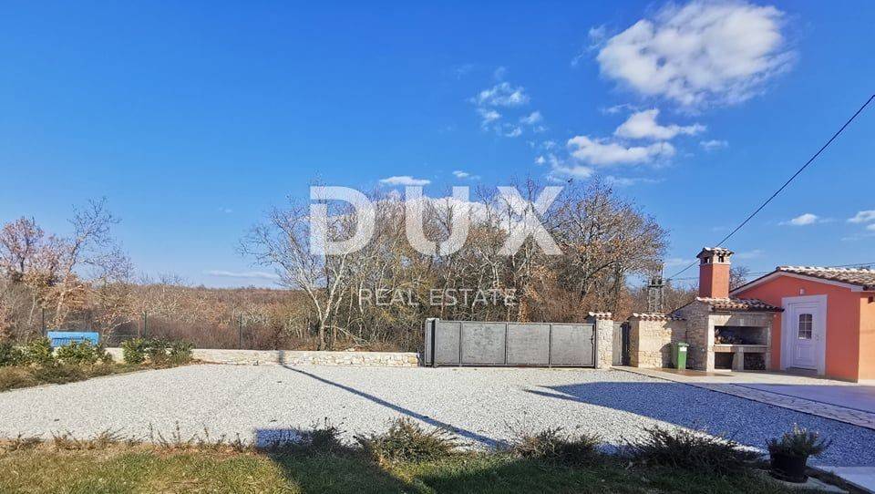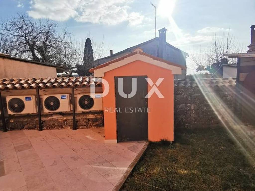 In der Nähe von Visnjan in einem kleinen und ruhigen istrischen Dorf befindet sich ein Anwesen mit zwei Häusern. Das Anwesen erstreckt sich über ein Grundstück von 2066 m2, die Fläche beider Häuser beträgt 220 m2. Die Fläche des größeren Hauses beträgt 150m2 und erstreckt sich über zwei Etagen. Das Erdgeschoss besteht aus einem geräumigen Wohnzimmer mit Küche und Essbereich, wo es einen Kamin gibt, dann gibt es zwei Schlafzimmer und ein Badezimmer. Auf der zweiten Etage befinden sich zwei weitere Schlafzimmer mit eigenem Bad. Jedes Schlafzimmer und Wohnzimmer verfügt über eine eigene Klimaanlage und einen Fernseher. Das Haus wurde 2020 im istrischen Stil komplett renoviert und ist eine Kombination aus modernem und einheimischem Stil. Die Beheizung des Hauses erfolgt über eine Öl-Zentralheizung und im Wohnzimmer befindet sich ein Kamin, der Sie zusätzlich wärmt und Ihnen die richtige Atmosphäre verleiht. Das Haus befindet sich in einem gepflegten Garten von 985 m2, wo sich eine Sommerküche mit Bad, Swimmingpool und Spielplatz für Kinder befindet. Das zweite Haus ist ein Erdgeschoss von 70m2 und befindet sich auf einem Grundstück von 1081m2. Das Haus besteht aus zwei Schlafzimmern, zwei Bädern, Küche mit Essbereich und Wohnzimmer. Dieses Haus befindet sich derzeit in der Rohbauphase und steht daher zum Verkauf. Das Haus befindet sich am Anfang des Grundstücks, so dass eine große Gartenfläche von ca. 700 m2 vorhanden ist. Es wird auch ein Schwimmbad mit einem Schwimmbecken im Landschaftsgarten geben. Die Häuser werden in einem Paket und komplett möbliert verkauft. Für alle Liebhaber von Natur und Ruhe ist diese Immobilie eine ideale Gelegenheit. Immobilien sind eine großartige Investition sowohl für den Tourismus als auch für das Familienleben.