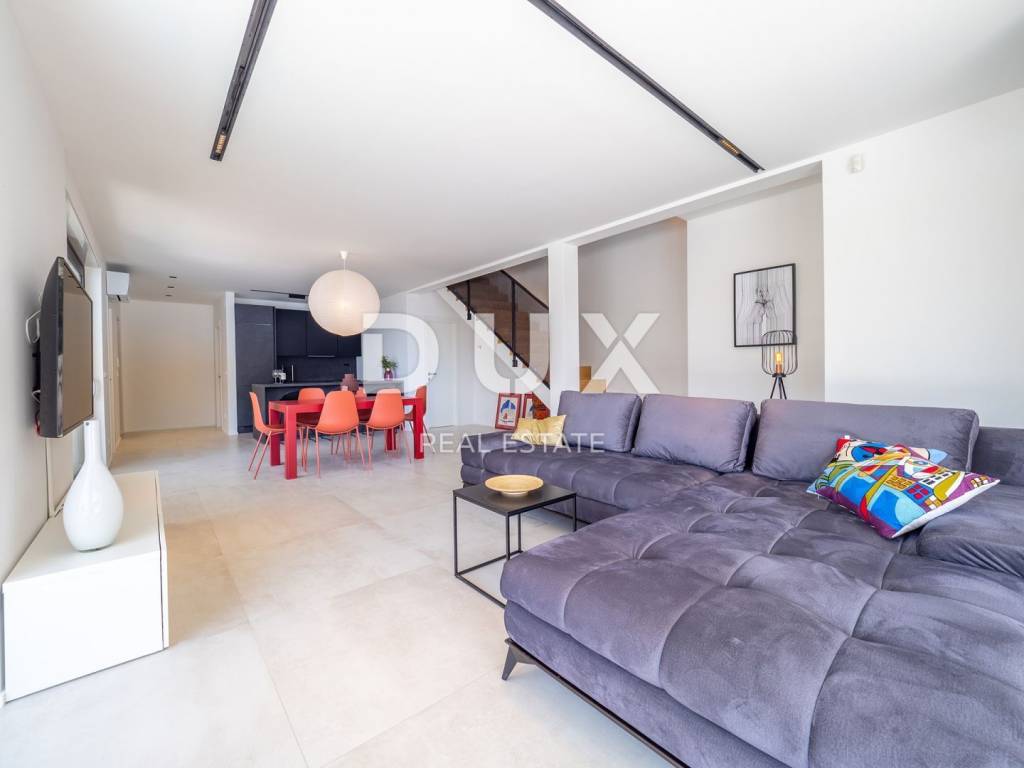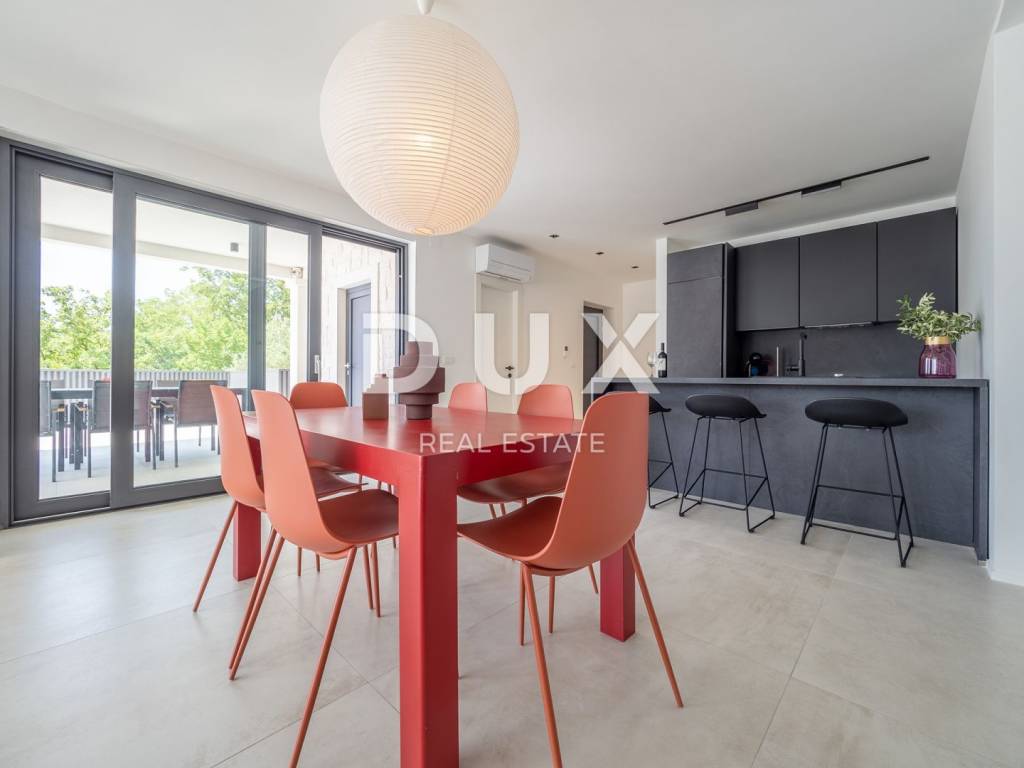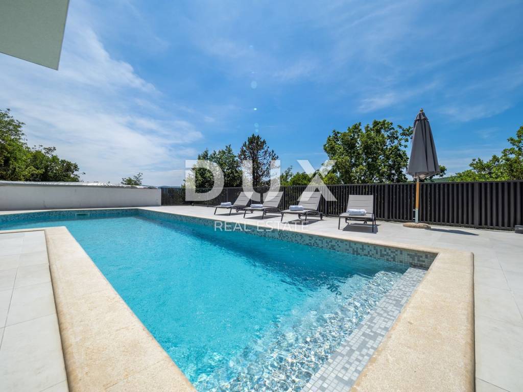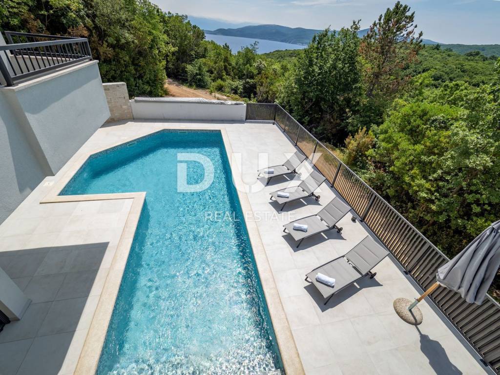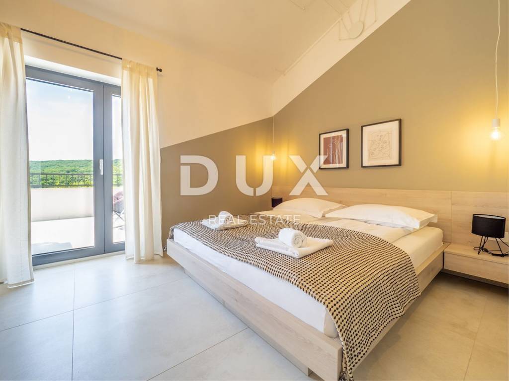 Die Insel Krk, Vrbnik - Luxushaus mit Pool in Meeresnähe Das Haus hat eine Gesamtfläche von 150 m2, erstreckt sich über zwei Etagen, Erdgeschoss und erster Stock, die durch eine Innentreppe miteinander verbunden sind, und befindet sich auf einem Grundstück von 470 m2 . Das Erdgeschoss verfügt über einen überdachten Eingang, Flur, Wohnzimmer mit Küche und Essbereich, Speisekammer, Toilette, Abstellraum, Waschküche, Innentreppe. Das Wohnzimmer öffnet sich auf eine überdachte Terrasse von 30m2 und ein Sonnendeck. In der Speisekammer befindet sich eine Vorbereitung für die Sauna. Im ersten Stock befinden sich drei Schlafzimmer mit eigenem Bad mit Zugang zu einer Terrasse von 15 m2 und einer Loggia von 3 m2 mit Meerblick. Während des Baus wurden hochwertige Materialien und Geräte verwendet, die eine hochwertige Konstruktion garantieren, klimatisiert mit 5 Klimaanlagen, Fußbodenheizung im ersten Stock, Videoüberwachung, WLAN, 2 Schornsteine und Vorbereitung für Außen- und Innenkamin, Aluminiumtischlerei , Sicherheitstüren. Es gibt einen beheizten Swimmingpool im schön angelegten Garten und zwei Parkplätze sind vorhanden. Ruhige Lage, in der Nähe der Grünzone, 500 m vom Meer entfernt.