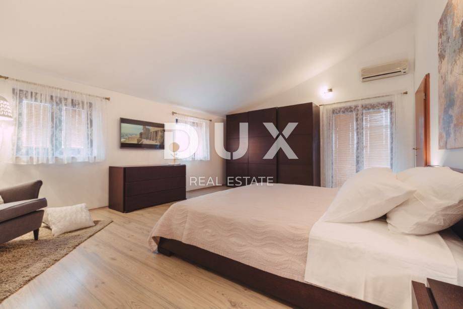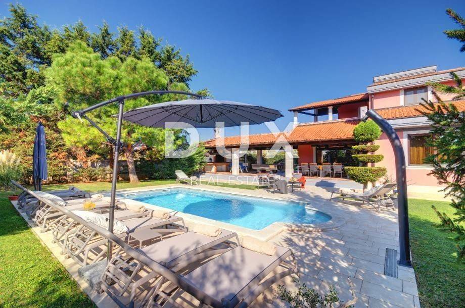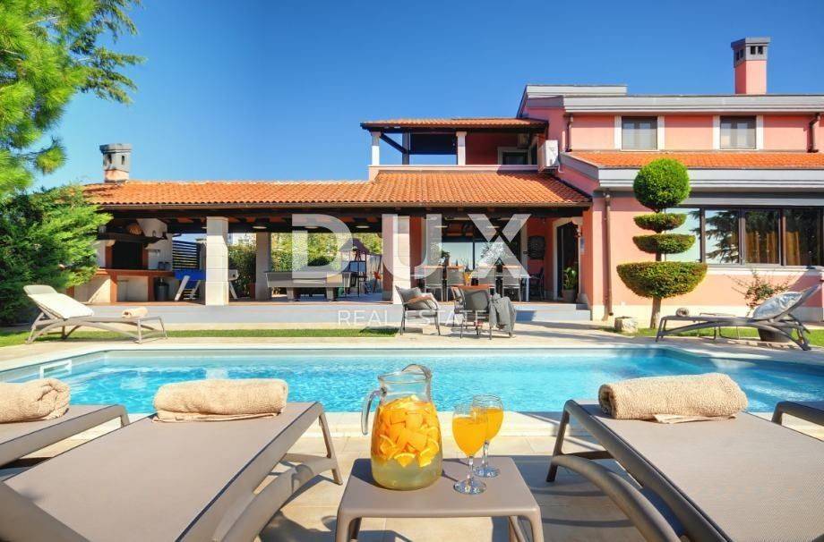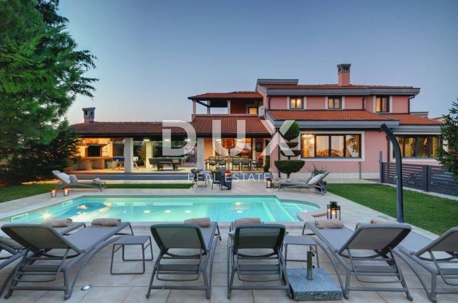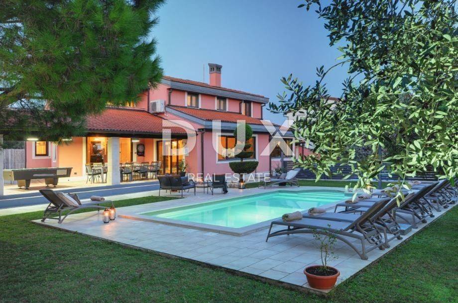 MODERNES HAUS MIT POOL (EG + 1) zu verkaufen in Veli Vrh (Pula). Es besteht aus 5 Schlafzimmern, drei Badezimmern und einer Toilette. Erdgeschoss: WC, Badezimmer, ein Schlafzimmer, Küche, Esszimmer und Wohnzimmer mit Zugang zu einer überdachten Terrasse mit Blick auf den Garten und den Pool. Auf der überdachten Terrasse gibt es Billard, Tischfußball, Darts, Esstisch für 12 Personen und Grill. Das Esszimmer und das Wohnzimmer sind offener Raum. Im Außenbereich befindet sich ein Kinderspielplatz. 1. Stock: 2 Bäder, 2 überdachte Terrassen, 4 Schlafzimmer (zwei mit Zugang zur Terrasse) Parkplatz: ein überdachter Außenstellplatz und 4 nicht überdachte Stellplätze im Hof. Auch die Möglichkeit, die Straße innerhalb der Siedlung für zusätzliches Parken zu nutzen. Neben dem auf den Bildern befindlichen Gebäude gibt es einen Keller von 30 m2, eine Taverne mit Kamin und Toilette, eine Wohnung mit einem Badezimmer, einem Schlafzimmer und einem Wohnzimmer. Diese Wohnung hat Zugang zu einem Außenbereich von 200 m2. Das gesamte Grundstück ist eingezäunt, was Freiheit und Privatsphäre bietet. Nur 2,5 km von wunderschönen Landschaftsstränden sowie wilden unberührten Stränden umgeben von mediterranen Pflanzen und Vegetation. Das römische Amphitheater ist nur 2,5 km entfernt, ebenso das Zentrum von Pula mit allen notwendigen Einrichtungen für das Leben eines modernen Menschen. Eigentumsnachweis ohne Belastungen! Nutzungserlaubnis!