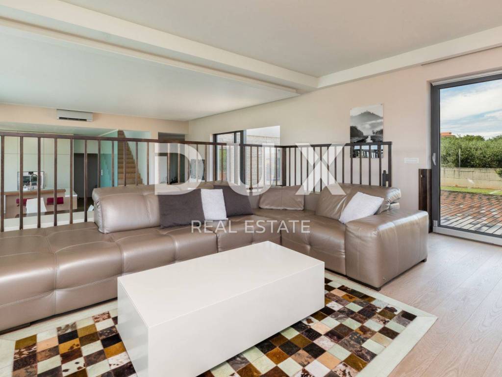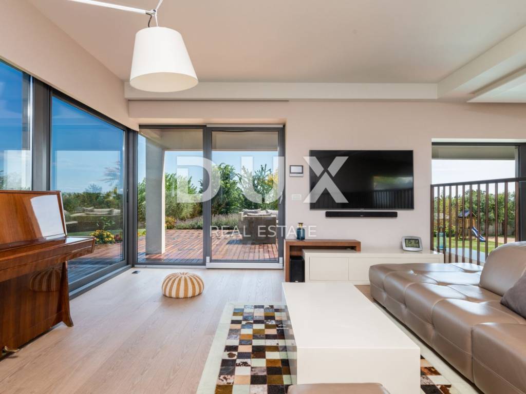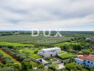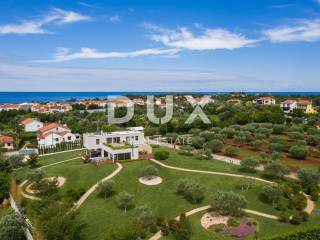 Umag, die erste Stadt am Eingang zu Istrien aus dem Norden, erobert mit ihrem Charme, ihrer Vielfalt und ihrem Angebotsreichtum. Umag ist eine kleine Stadt, die die Besonderheiten der gesamten Region durch 45 km Küste und interessantes Hinterland zusammenfasst und vielleicht die beste Einführung in eine andere Erfahrung des Mittelmeers ist. Die Stadt Umag hat eine äußerst interessante Geschichte: Sie wurde von römischen Adligen entdeckt und sie beschlossen, sie als Sommerresidenz zu nutzen. Die Pracht, Pracht und der Glamour jener Zeit spiegeln sich heute in den venezianischen Häusern der Altstadt wider - Teile der Mauern und Türme sowie Gebäude und Kirchen aus der Renaissance und dem Barock sind erhalten geblieben. Nur 400 m vom Meer entfernt befindet sich diese Luxusvilla, die mit hochwertigen Geräten, einem zentralen Computer für Beleuchtung und Heizung, maßgeschneiderten Möbeln, einem hochmodernen Beleuchtungssystem und einer Fußbodenheizung ausgestattet ist. Es besteht aus einem geräumigen Wohnzimmer, 4 Schlafzimmern, 4 Bädern und 1 WC. Das Haus verfügt über 336 m2 Wohnfläche, umgeben von drei Terrassen mit Meerblick, Swimmingpool, Olivenhain und mediterranem Grün. Es liegt 5 Minuten vom Stadtzentrum entfernt.