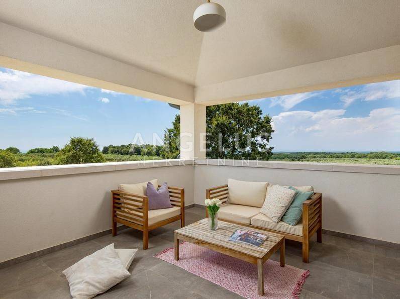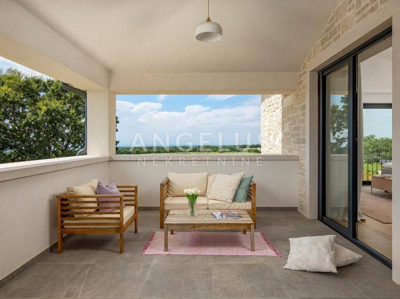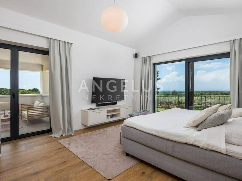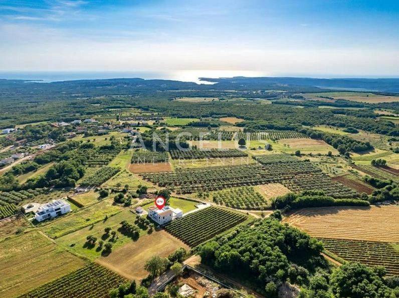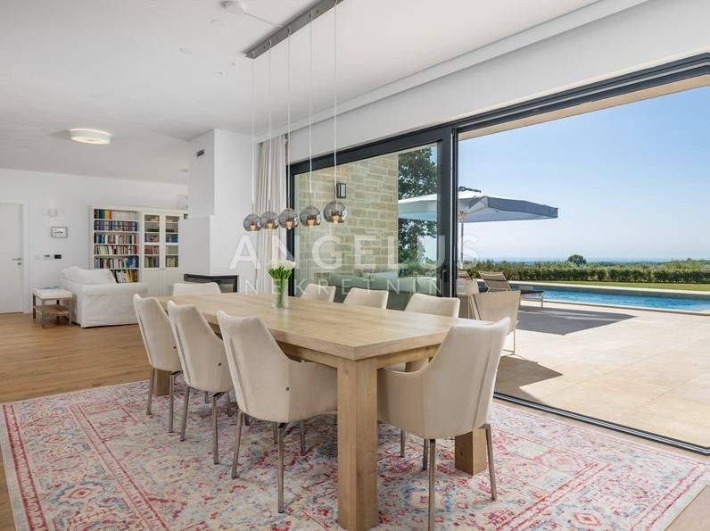 BESCHREIBUNG: Diese Luxusvilla befindet sich an der Westküste der istrischen Halbinsel in der Nähe von Višnjan, nicht weit von Novigrad (einer Stadt am Meer). Diese Villa stellt eine harmonische Mischung aus moderner Eleganz und mediterranem Flair dar. Diese Lage bietet Ruhe, Alleinlage auf ca. 400 m Wohnfläche, vielfältige Raumaufteilung und einen sensationellen Blick auf das Meer.