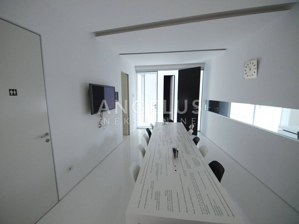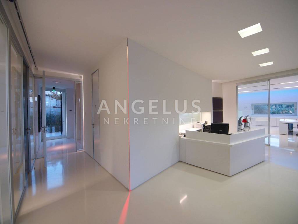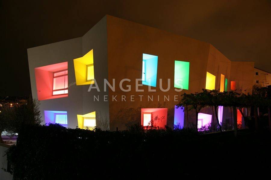 Das Besondere an dieser Immobilie ist, dass sie derzeit geschäftlich in einer Mischzone genutzt wird, aber umgebaut und als Wohneinheit mit der Möglichkeit zum Bau eines Schwimmbades genutzt werden kann, wofür bereits ein Projekt vorliegt. Außerdem wurde jede Etage so gestaltet, dass sie unabhängig voneinander betreten werden kann. Es besteht die Möglichkeit, entsprechend dem Raumplan ein weiteres Stockwerk zu bauen. Das Gebäude wurde im Jahr 2006 erbaut und bei der Konstruktion wurden vorgespannte Stahlbetonplatten verwendet, die dafür sorgen, dass der Raum jedes einzelnen Stockwerks maximal offen ist, ohne tragende Wände in der Raummitte. Tragende Elemente des Gebäudes sind die Außenwände und die Wände neben der Treppe, die vom Erdgeschoss ins Untergeschoss und ins erste Obergeschoss führt. Vom Erdgeschoss und der ersten Etage hat man durch große offene Glaswände einen Blick auf das Meer.
