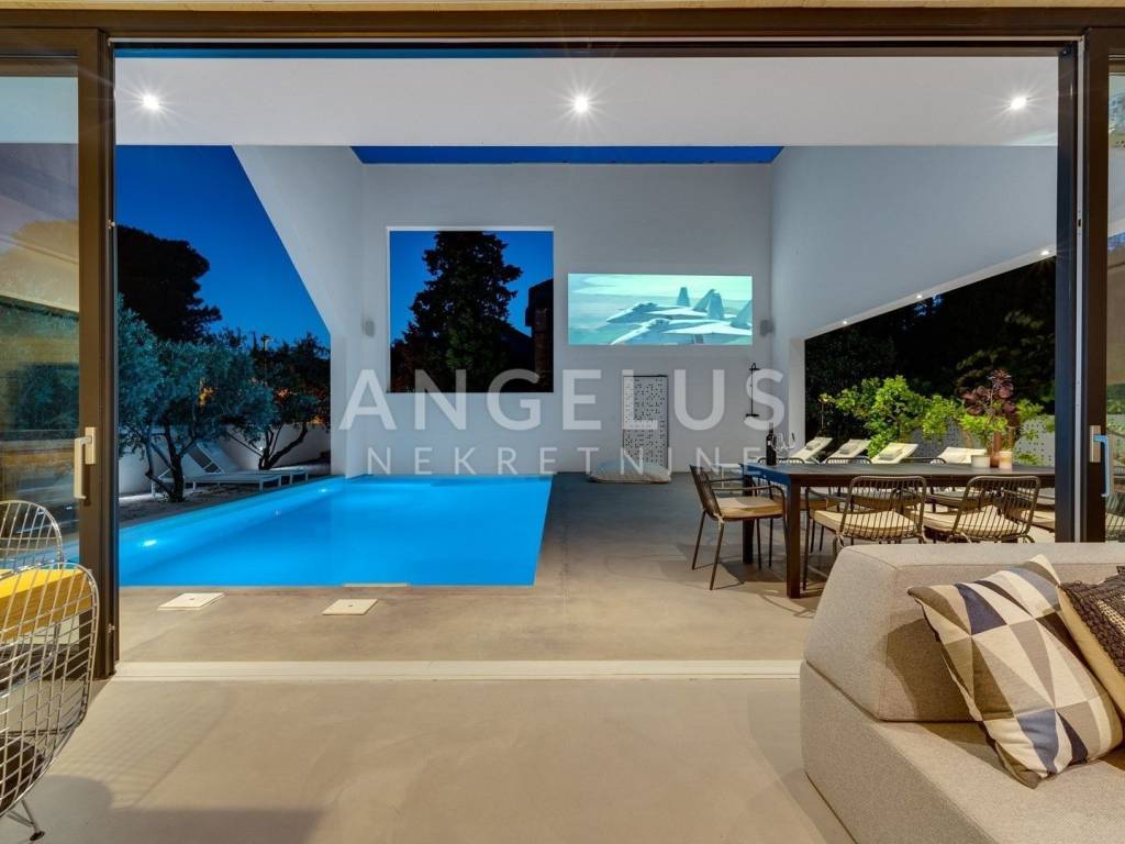 Eine Luxusvilla mit Swimmingpool zum Verkauf, gelegen in einem ruhigen Teil einer Küstenstadt auf der bezaubernden Insel Brač, einem beeindruckenden Ort mit authentischer Landschaft, nur 50 m vom Meer entfernt. Brač gehört als größte mitteldalmatinische Insel zum sonnigsten Adriagebiet. Umgeben von magischen Buchten und bedeckt mit Pinien- und Zypressenwäldern ist sie eine der schönsten kroatischen Inseln. Sie ist durch tägliche Schiffslinien sehr gut mit dem Festland verbunden und eine der wenigen Inseln in der Adria, die über einen eigenen Flughafen verfügt. Aufgrund seiner attraktiven geografischen Lage, seines reichhaltigen kulturellen, touristischen und gastronomischen Angebots, seiner wunderschönen Buchten und Strände sowie seines entspannten Lebensstils gilt Brač als eines der begehrtesten Reiseziele für Leben und Urlaub in Kroatien.