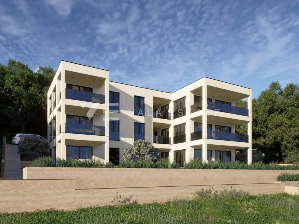 Immobilien Insel Krk, Omišalj zum Verkauf steht eine Ferienwohnung im ersten Stock eines Neubaus mit insgesamt sechs Wohneinheiten. Die Ferienwohnung hat eine Wohnfläche von 81 m2 und besteht aus einem Eingangsbereich, zwei Schlafzimmern, einem Badezimmer, einer Küche, einem Esszimmer und einem Wohnzimmer mit Zugang zu einer überdachten Terrasse mit offenem Panoramablick auf die Kvarner Bucht. Im gemeinsamen Innenhof des Gebäudes stehen zwei Parkplätze zur Verfügung, wo Ladegeräte für Elektrofahrzeuge installiert werden. Für den Bau wurden hochwertige Materialien und Ausstattungen verwendet, darunter Keramikbodenbeläge, hochwertige Sanitärkeramik, Fußbodenheizung mit Wärmepumpe, Klimaanlage, ein Smart-Home-System, hochwertige ALU-Tischlerei mit ALU-Rollläden und Sicherheitstüren. Die Immobilie befindet sich in bester Lage in der Nähe des Meeres, schöner Strände und des Zentrums mit allen notwendigen Annehmlichkeiten. Die Immobilie befindet sich derzeit im Bau und soll voraussichtlich Ende 2025 fertiggestellt sein.