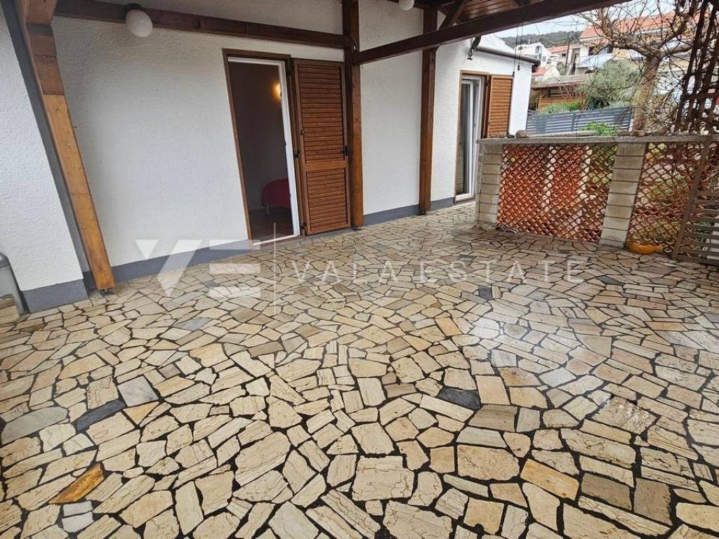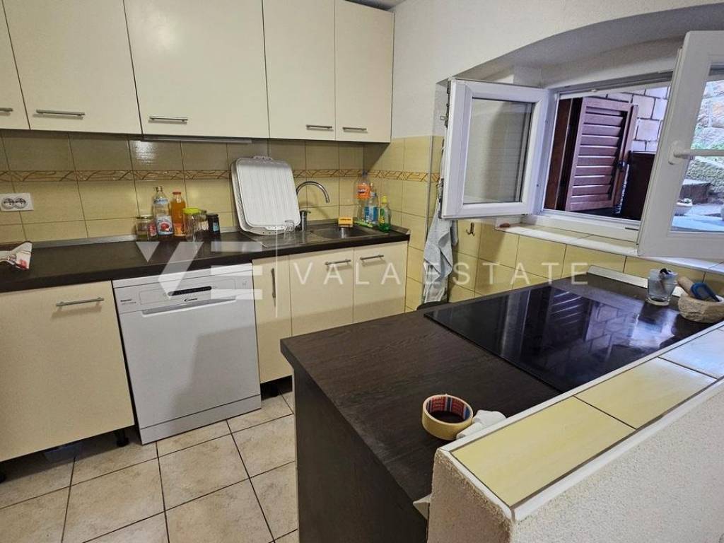 Immobilien Insel Krk, Punat im alten Stadtkern steht ein freistehendes Steinhaus zum Verkauf, das auf einem Grundstück von 133 m2 mit einer Gesamtwohnfläche von 78 m2 auf zwei Etagen gebaut wurde. Im Untergeschoss befindet sich eine Taverne ein Raum für Geselligkeit, Abstellraum, Wohnzimmer, Badezimmer und Küche mit Essbereich. Im hohen Erdgeschoss, das durch eine Innentreppe verbunden ist, befinden sich drei Schlafzimmer, von denen zwei Zugang zu einer geräumigen überdachten Terrasse mit Meerblick haben. Das Haus wird mit allen Möbeln verkauft, verfügt über PVC- und Holzschreinereiarbeiten, ist klimatisiert und sofort bezugsfertig. Es verfügt über einen eingezäunten Garten mit zwei Parkplätzen. Es befindet sich in einer Lage in der Nähe aller Annehmlichkeiten und nur 100 m vom Meer und dem ersten Strand entfernt. Diese Immobilie ist eine ausgezeichnete Gelegenheit für den persönlichen Wohnsitz, aber auch als Investition zum Zwecke der touristischen Vermietung.