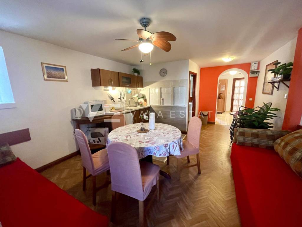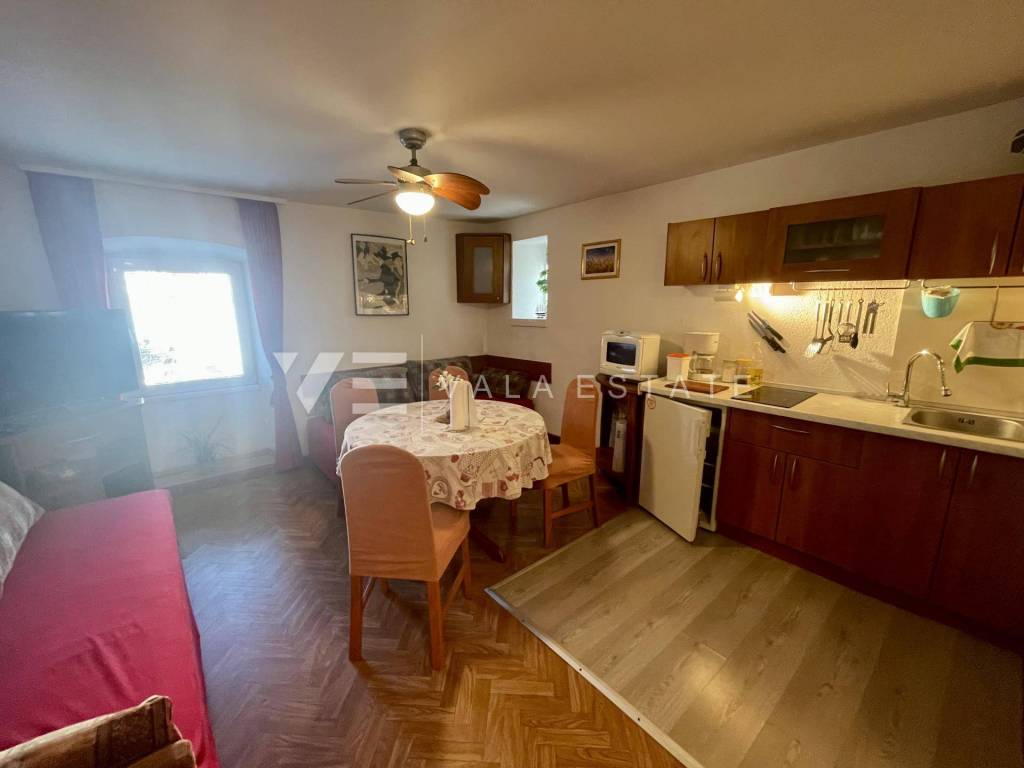 Immobilien Insel Krk, Vrbnik zum Verkauf steht ein teilweise renoviertes Reihenhaus in der Altstadt von Vrbnik, nur 400 Meter vom Meer und den Stränden entfernt. Das Haus umfasst eine Fläche von 104 m2, verteilt auf das Untergeschoss, das obere Erdgeschoss und den ersten Stock, wo sich insgesamt drei Wohnungen befinden. Im Untergeschoss und im oberen Erdgeschoss befinden sich zwei Wohnungen, bestehend aus einem Schlafzimmer, einem Badezimmer und einem Wohnzimmer mit Küche und Essbereich, während sich im ersten Stock ein Studio-Apartment mit Terrasse befindet. Die Wohnung im Untergeschoss muss renoviert werden. Das Haus wird voll möbliert verkauft und ist sofort bezugsfertig. Aufgrund seiner Lage in der Nähe der schönen Strände und des Zentrums von Vrbnik ist es eine Möglichkeit zur Eigennutzung oder zur touristischen Vermietung.