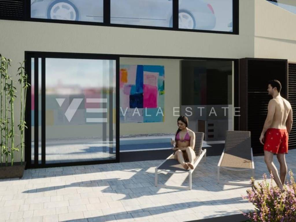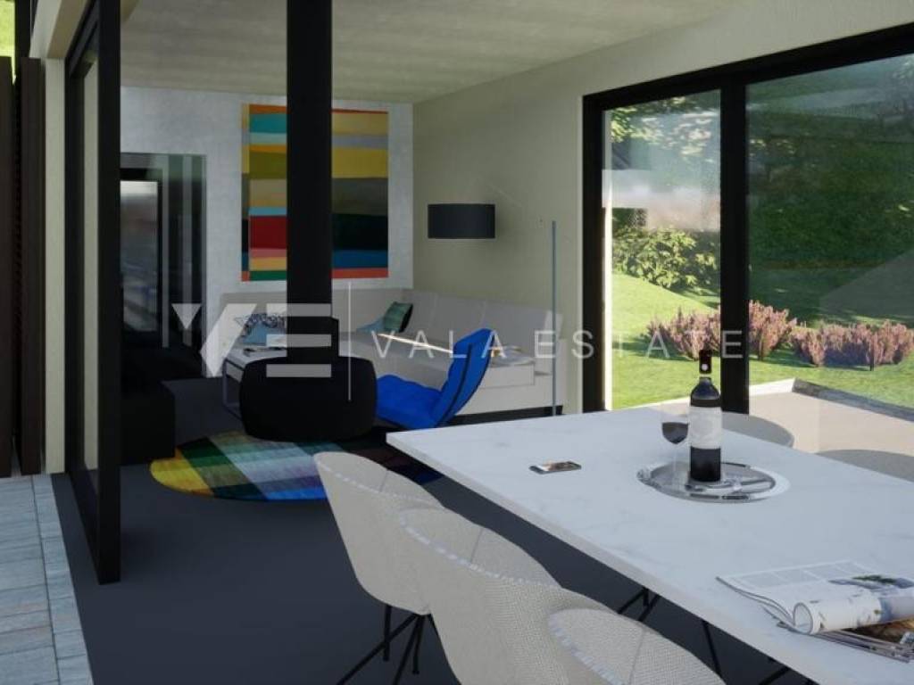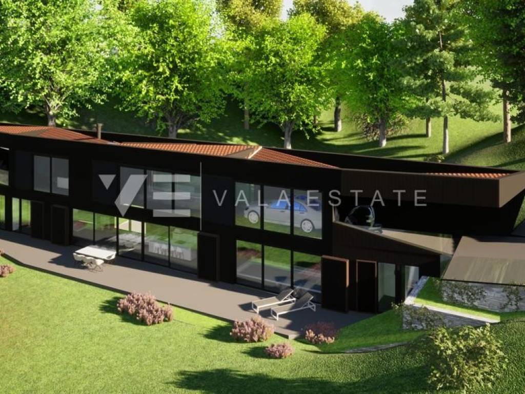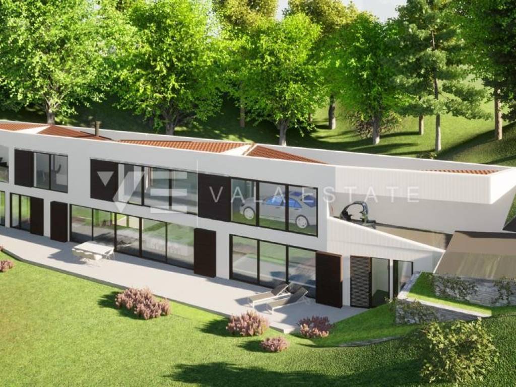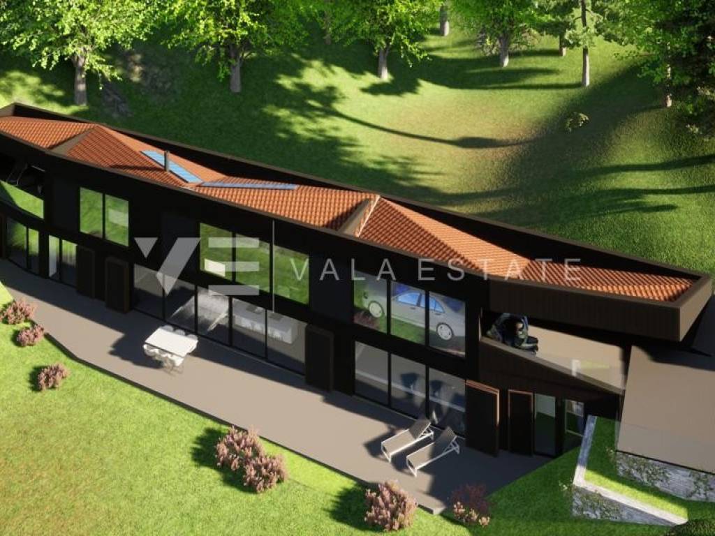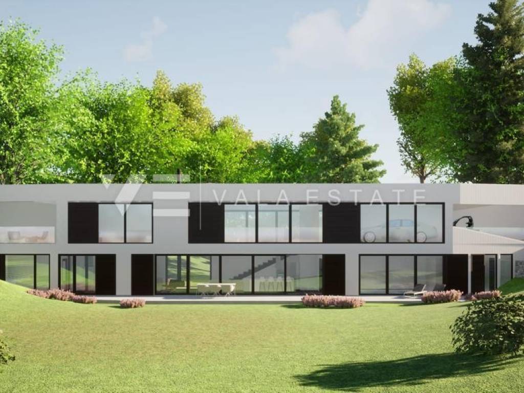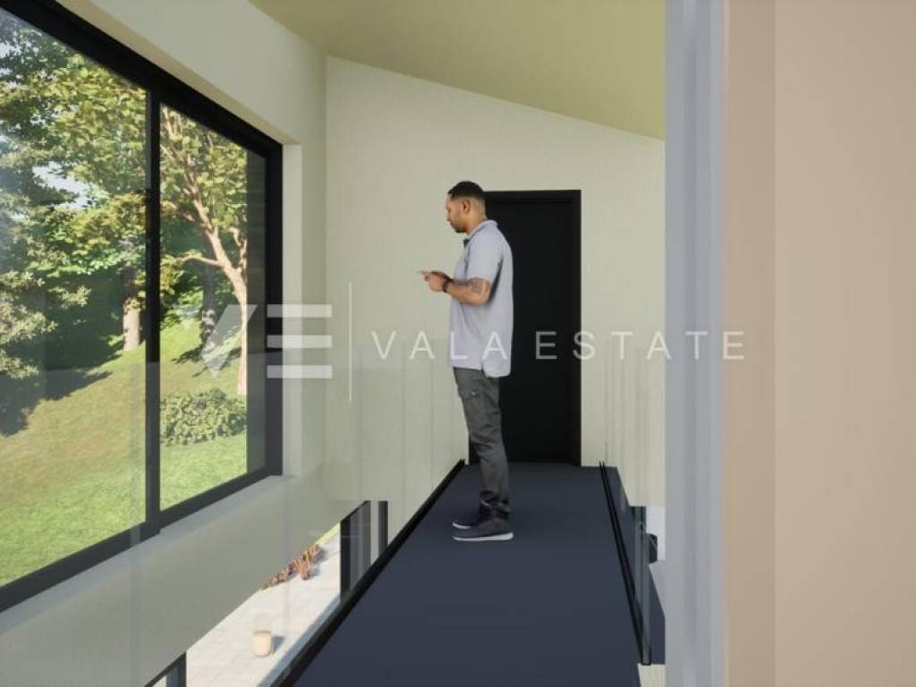 Immobilieninsel Krk, Vrbnik zum Verkauf steht ein Baugrundstück mit einer Gesamtfläche von 646 m2 mit einem konzeptionellen Projekt für den Bau einer modernen Villa mit Innenpool. Die Villa ist in ein Erdgeschoss und ein Obergeschoss mit einer Gesamtwohnfläche von 210 m2 aufgeteilt. Im Erdgeschoss befinden sich ein Maschinenraum, eine Toilette, ein Innenpool, ein Schlafzimmer, ein Badezimmer, eine Küche und ein Esszimmer sowie ein Wohnzimmer mit Zugang zu einer überdachten Terrasse. Auf der Etage, die über eine Innentreppe oder einen Aufzug erreichbar ist, befinden sich eine überdachte Eingangshalle mit Parkplatz, ein Eingangsbereich, ein Badezimmer und ein Schlafzimmer mit Zugang zu einer überdachten Terrasse. Die Lage ist ruhig, in der Nähe schöner Strände und des Zentrums mit allen Einrichtungen.