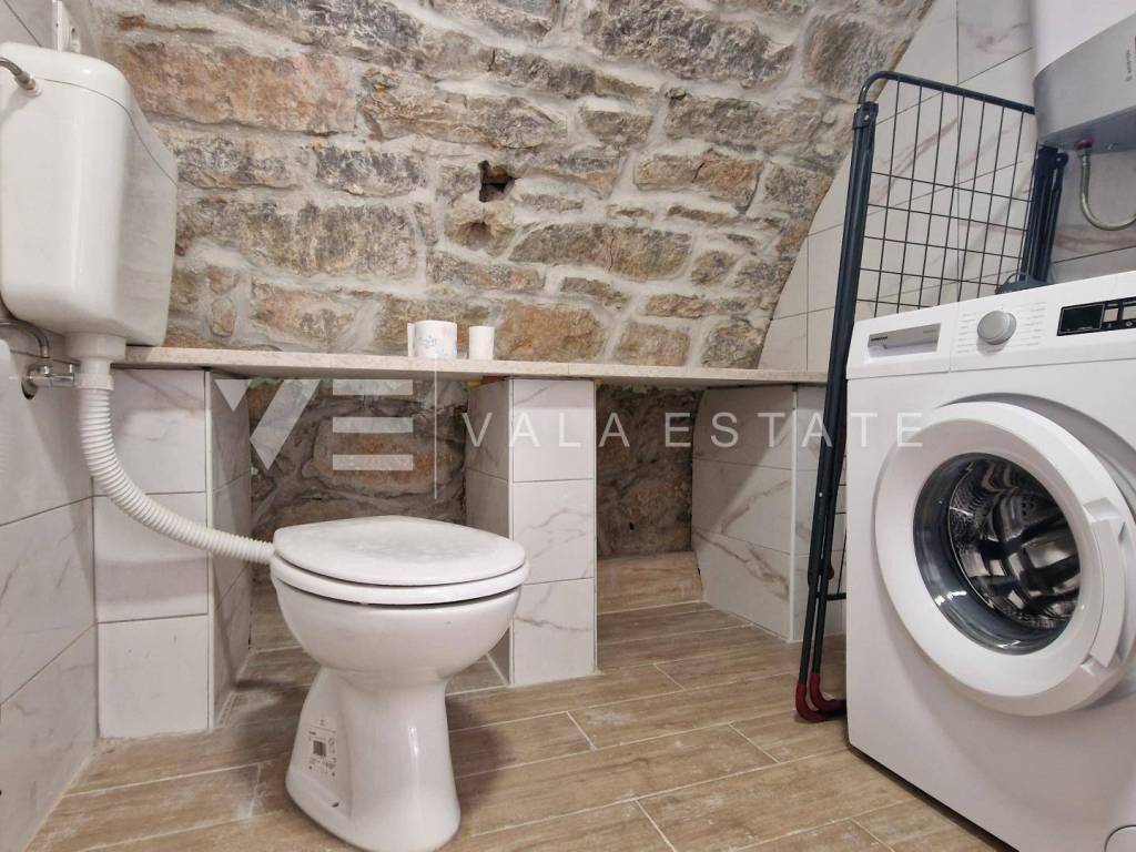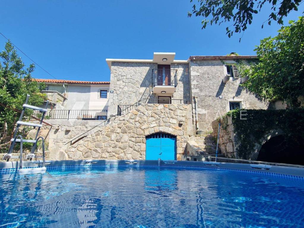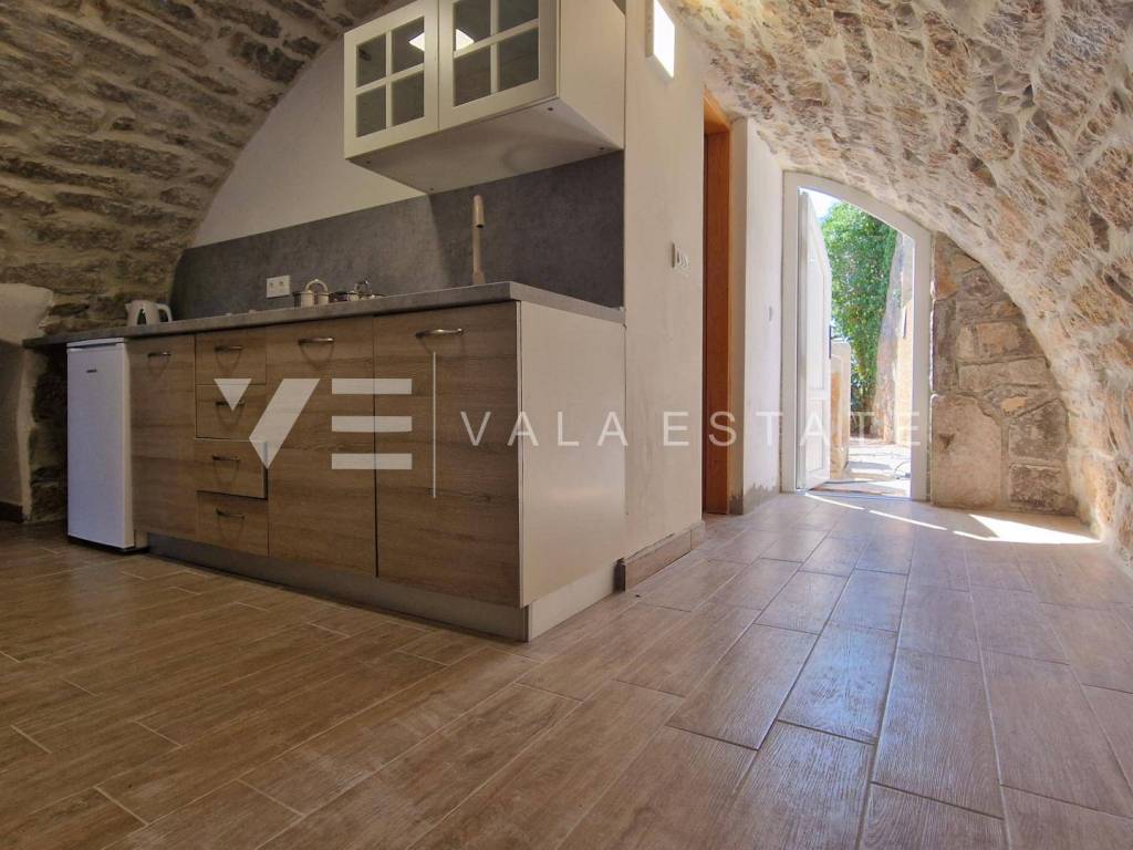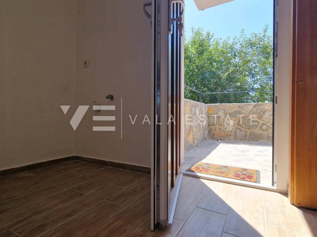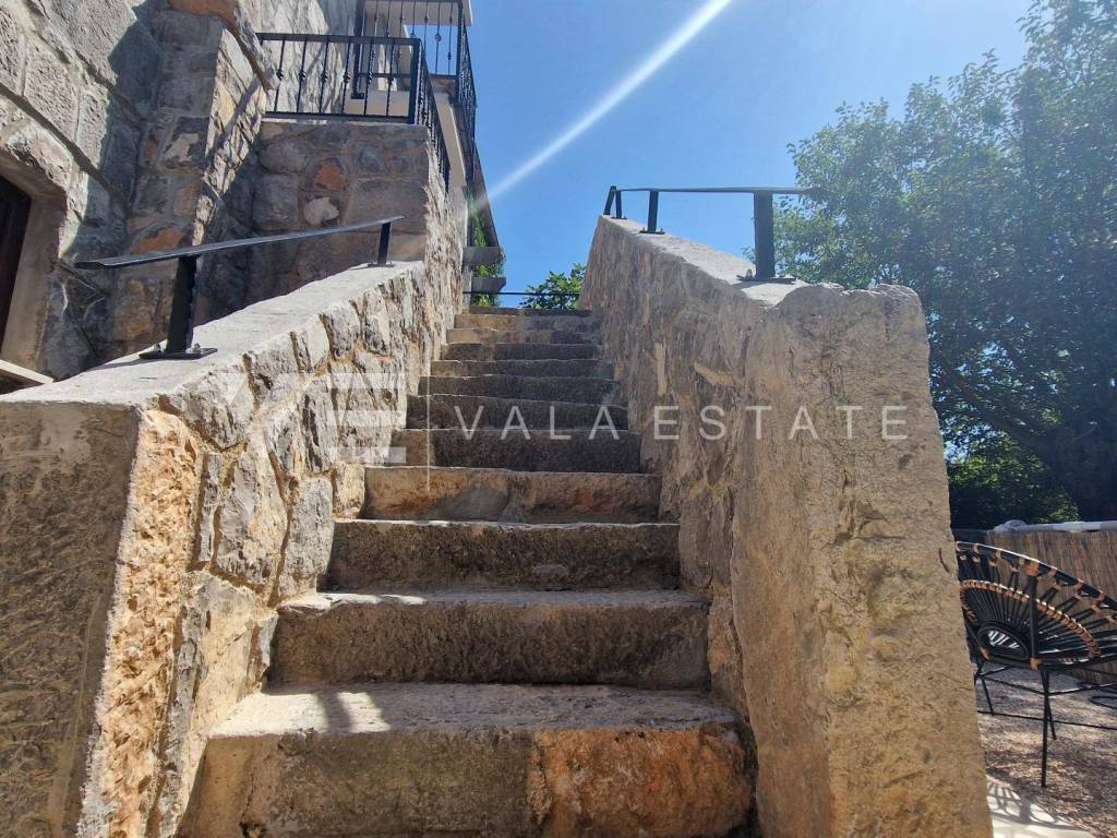 Immobilien Insel Krk, Umgebung der Stadt Krk renoviertes Steinhaus zum Verkauf in Reihe mit zwei Wohnungen verteilt auf 200 m2. Im Erdgeschoss befindet sich eine 60 m2 große Wohnung mit einem Badezimmer, einem Schlafzimmer und einem Wohnzimmer mit Küche und Esszimmer. Im ersten und zweiten Stock befindet sich eine geräumige zweistöckige Wohnung von 140 m2, die einen Eingangsbereich, ein Badezimmer, vier Schlafzimmer, eine Küche mit Esszimmer und ein Wohnzimmer mit Ausgang zur Terrasse umfasst. Beide Einheiten sind durch eine Außentreppe verbunden. Es gibt drei Parkplätze im Garten. Bei der Renovierung wurden einheimische Elemente und Stein beibehalten, hochwertige Baumaterialien verwendet, das Haus ist klimatisiert und verfügt über PVC-Außenschreinerei. Es befindet sich derzeit in der Renovierungsphase und die Fertigstellung der Arbeiten ist für Ende 2023 geplant. Die Lage ist wunderschön und ruhig, 2000 m vom Meer und schönen Stränden entfernt.