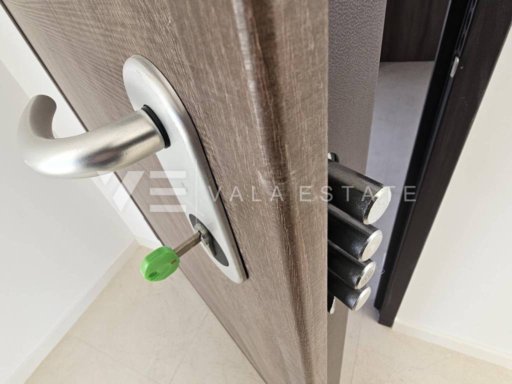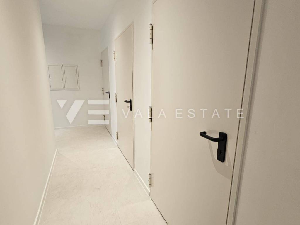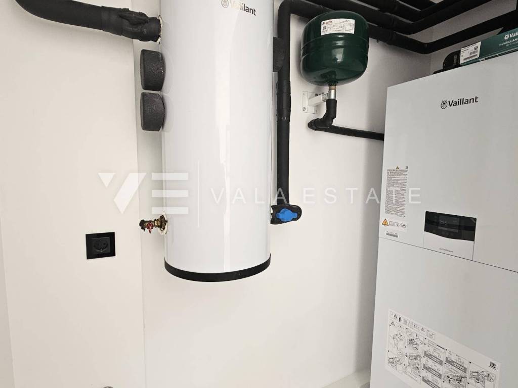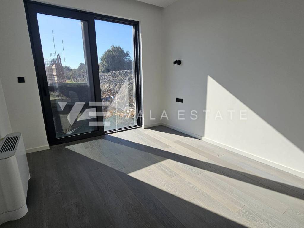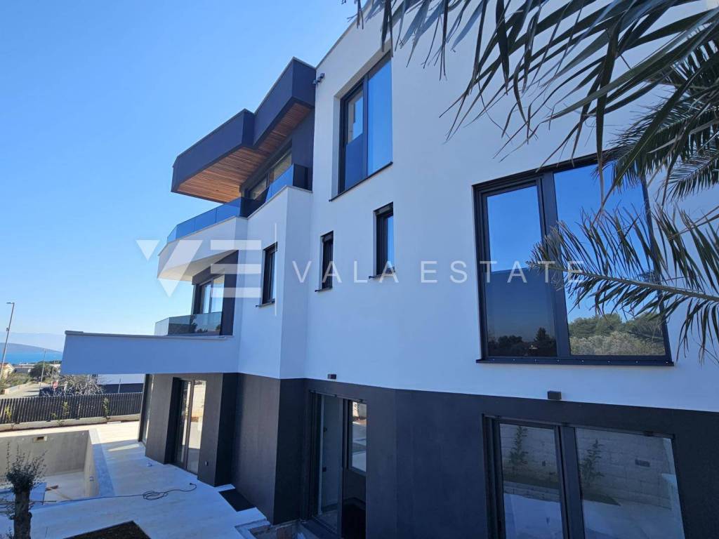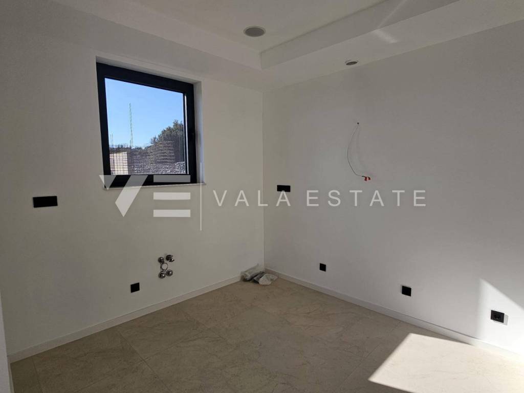 Immobilien Insel Krk, Krk - zum Verkauf steht eine Luxuswohnung im ersten Stock eines Familienhauses mit insgesamt vier Wohneinheiten. Die Wohnungsfläche von 73.75 m2 verteilt sich auf Eingangshalle, Speisekammer, Schlafzimmer, Bad, Küche mit Wohnzimmer und große Terrasse von 15,23 m2. Die Wohnung verfügt über einen Abstellraum von 5,62 m2 und zwei Parkplätze. Top-Bauweise und -Ausstattung mit Materialauswahl, Fußbodenheizung mit Wärmepumpe, ALU-Tischlerei und Klimaanlage aller Räume. Es befindet sich in ruhiger Lage, 600 m vom Meer und schönen Stränden und etwa 800 m vom Zentrum und allen Annehmlichkeiten entfernt.