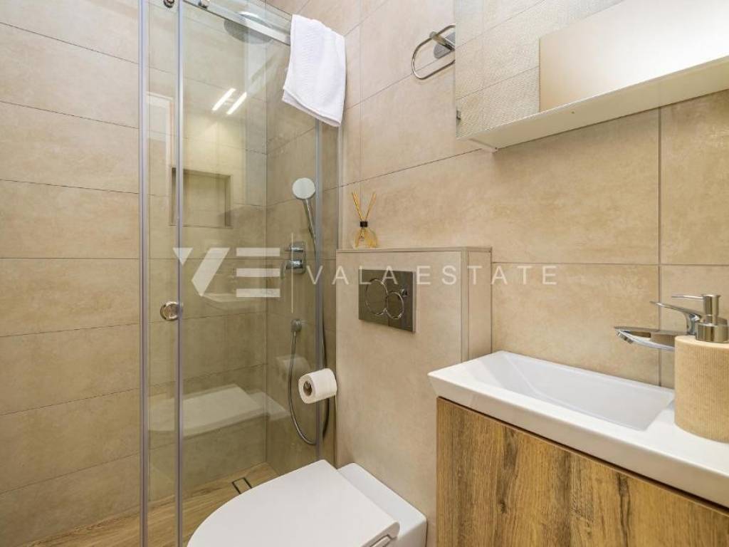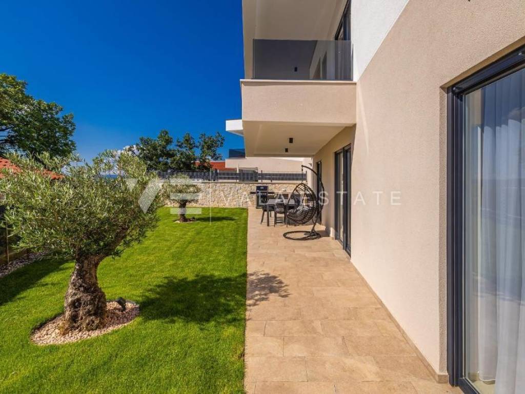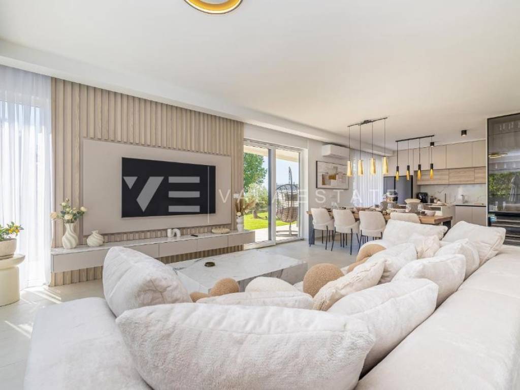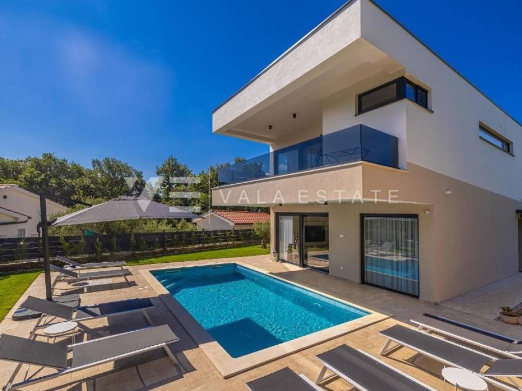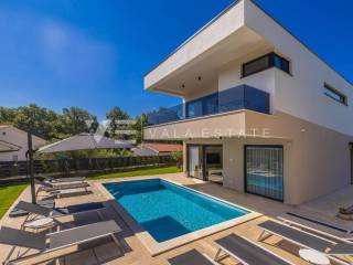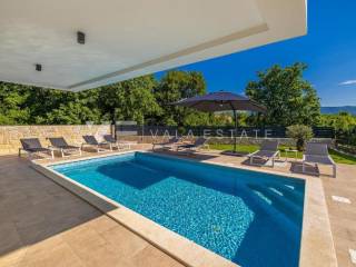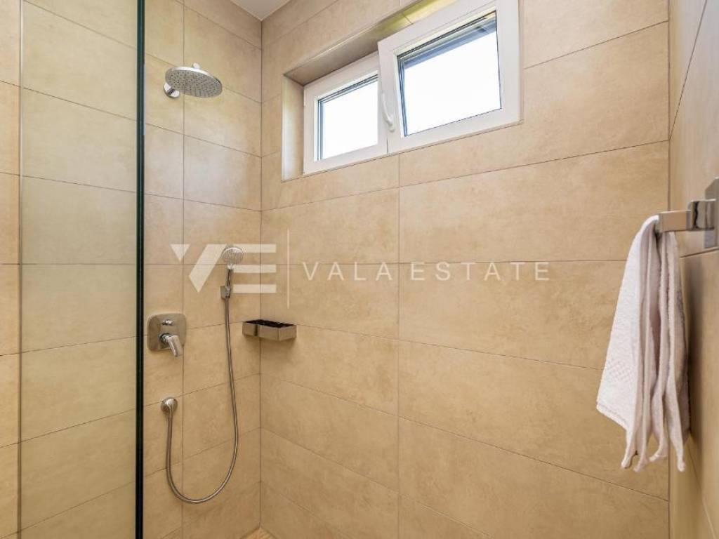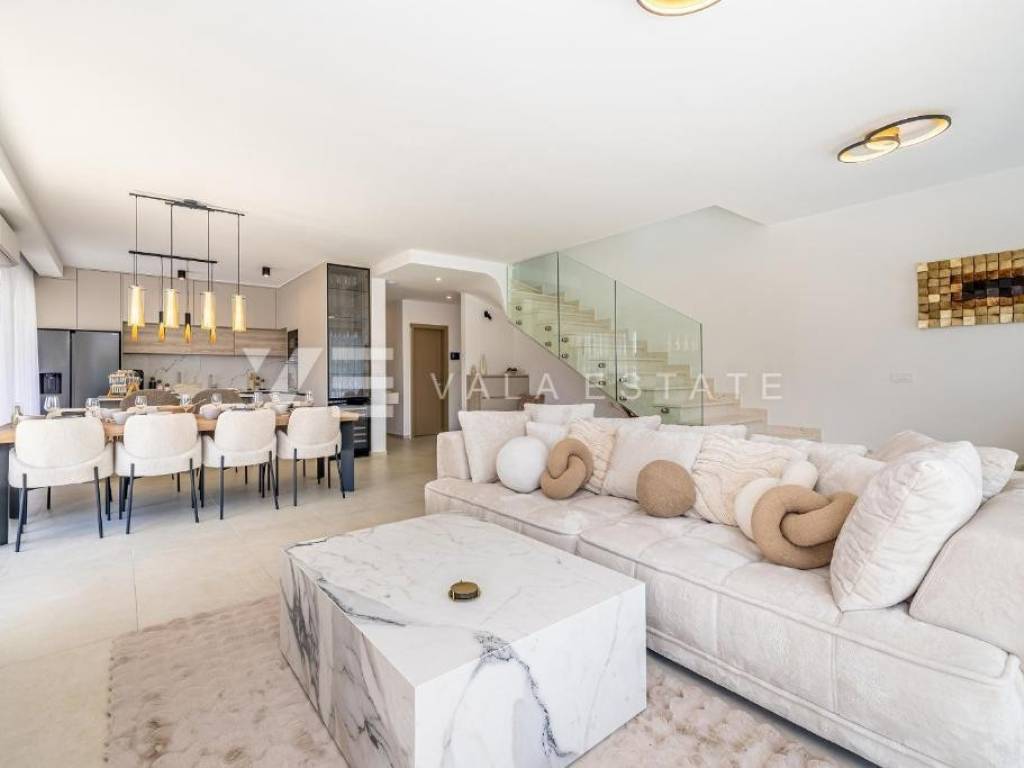 Immobilienangebot auf der Insel Krk, Omišalj Zum Verkauf steht ein modernes Doppelhaus mit 190 m Wohnfläche in einem Neubau in schöner, ruhiger Lage nahe dem Meer und dem Ortszentrum. Das Haus verfügt über ein Erdgeschoss mit einem geräumigen Wohnzimmer, einer Wohnküche, einem Gäste-WC und einem großen Abstellraum sowie ein Obergeschoss mit vier Schlafzimmern, jeweils mit eigenem Bad. Sowohl im Erdgeschoss als auch im Obergeschoss befinden sich möblierte Terrassen, die von den Schlafzimmern aus zugänglich sind. Für den Bau wurden hochwertige Materialien und Ausstattungen verwendet, darunter Keramikfliesen, hochwertige Sanitäreinrichtungen, Fußbodenheizung und Warmwasserbereitung mit Wärmepumpe, Gebläse-Split-Klimaanlagen, hochwertige Aluminium-Einbauschränke und Sicherheitstüren. Das Haus ist komplett möbliert und mit neuen, modernen, maßgefertigten Möbeln ausgestattet und wird im jetzigen Zustand verkauft. Auf dem wunderschön angelegten und umzäunten Grundstück, das absolute Privatsphäre bietet, befinden sich eine überdachte Terrasse, ein Garten mit mediterranen Pflanzen, ein 23 m großer Swimmingpool mit Liegewiese, eine Sommerküche, zwei Parkplätze und eine Ladestation für Elektrofahrzeuge. Die Immobilie liegt ruhig und dennoch in Strandnähe sowie in unmittelbarer Nähe zum Stadtzentrum mit allen Annehmlichkeiten. Sie eignet sich hervorragend zur Eigennutzung, bietet aber auch eine attraktive Investitionsmöglichkeit zur touristischen Vermietung. Die Immobilienagentur Vala Estate Malinska sorgt für eine sichere und transparente Eigentumsübertragung und stellt Ihnen alle notwendigen Dokumente zur Verfügung.