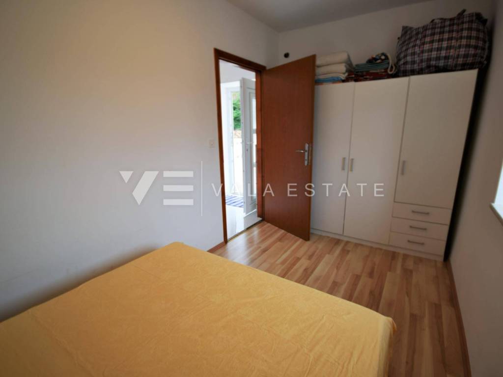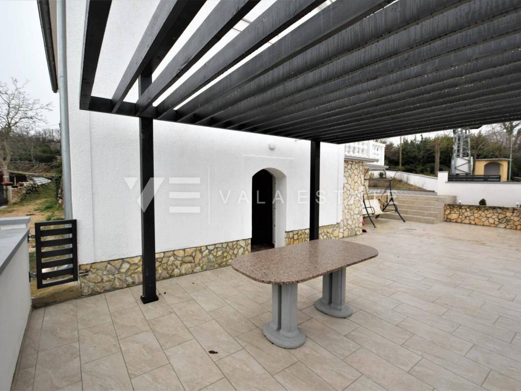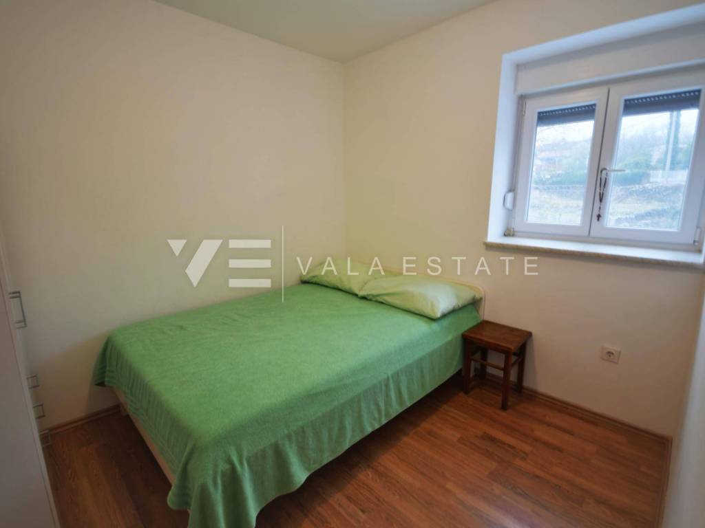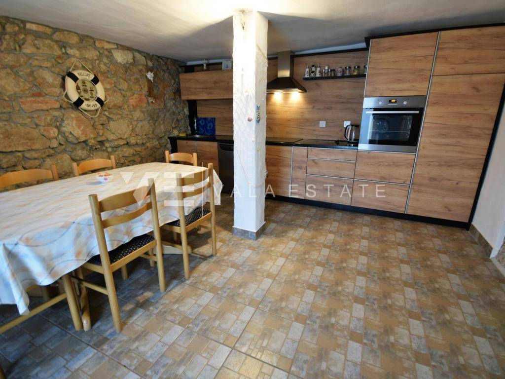 Immobilien Insel Krk, Region Dobrinja - freistehendes renoviertes Steinhaus zum Verkauf in ruhiger Lage. Es erstreckt sich über 110 m2 Wohnfläche und besteht aus Erdgeschoss und Obergeschoss. Das Erdgeschoss verfügt über eine Küche mit Essbereich, Wohnzimmer, Toilette und Abstellraum. Eine Außentreppe führt in den ersten Stock, wo sich drei Schlafzimmer und ein Badezimmer befinden. Das Haus wurde 2011 renoviert und wird komplett möbliert verkauft. Im Landschaftsgarten gibt es einen Parkplatz für mehrere Autos. Die Entfernung zum Meer beträgt 3500 m.