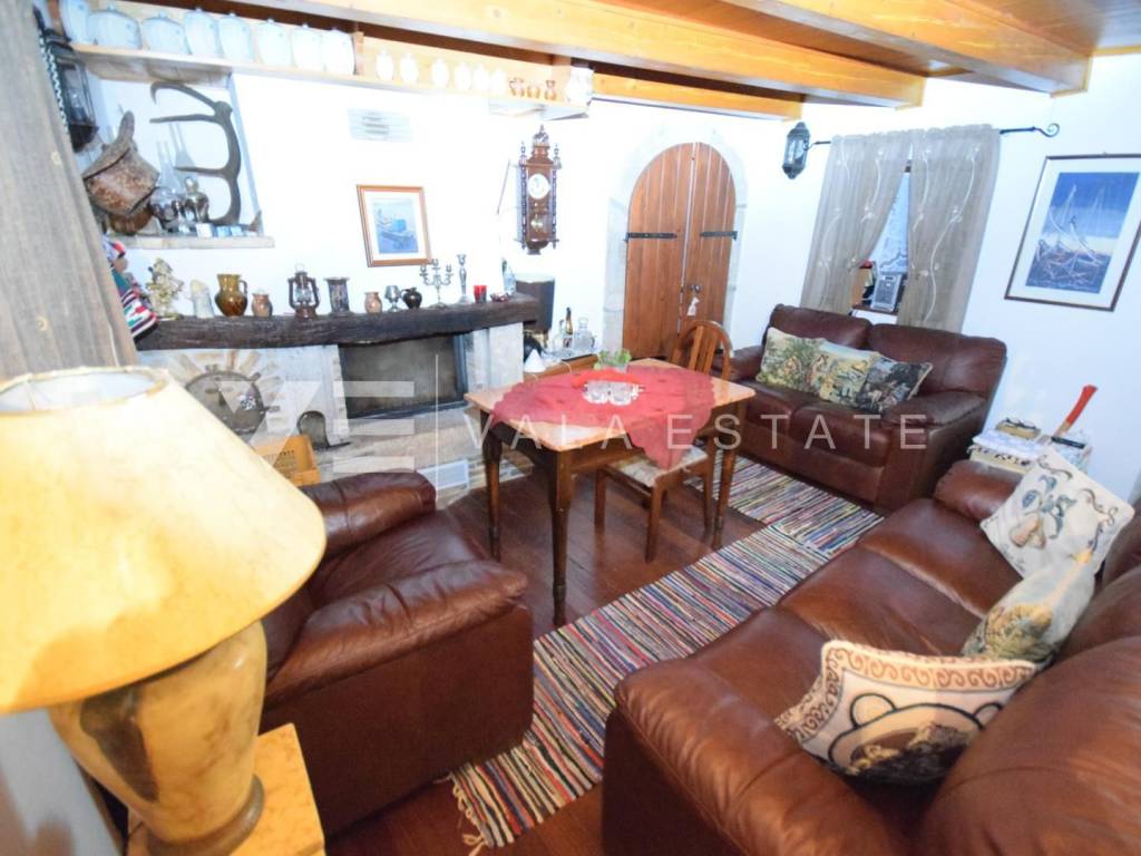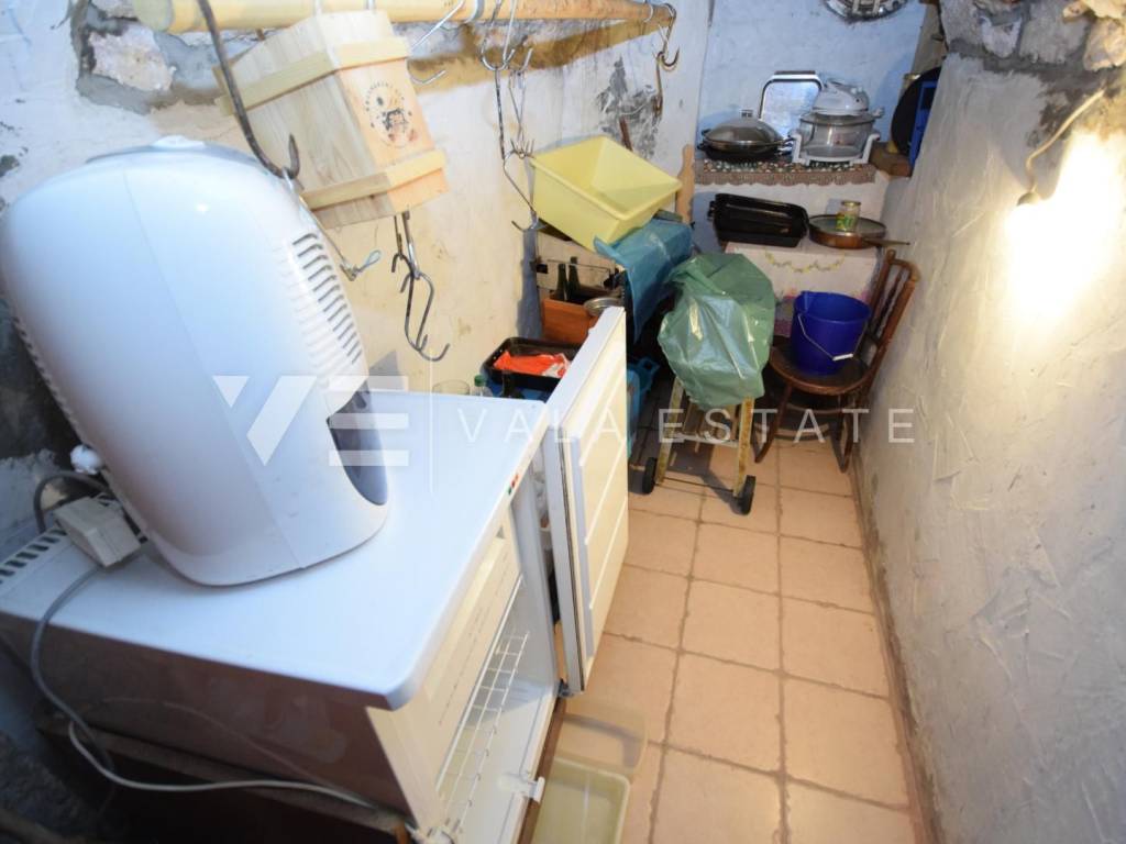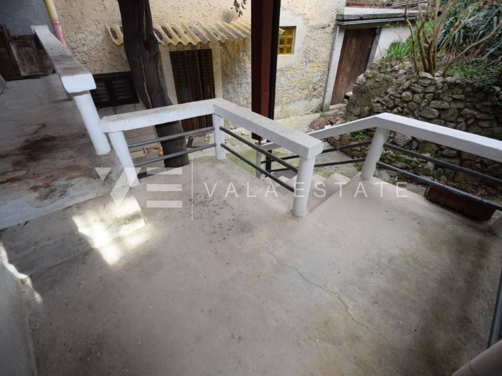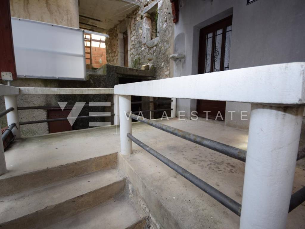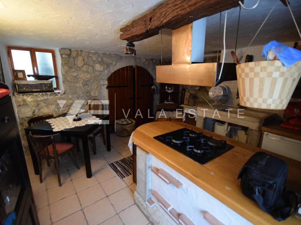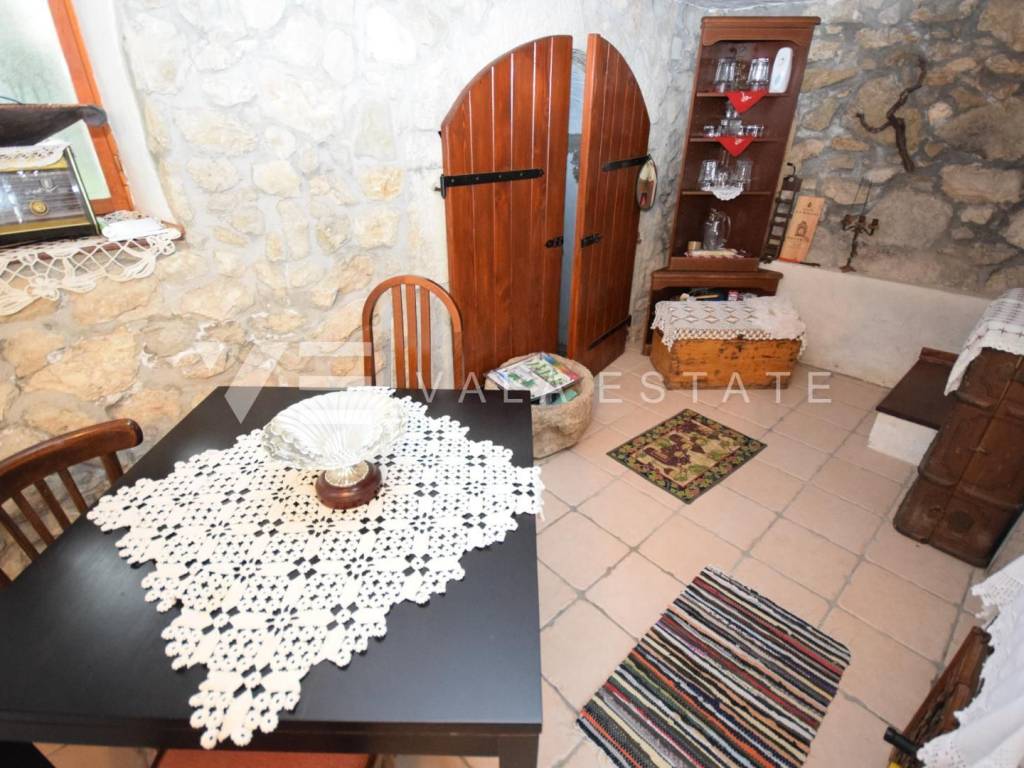 Immobilien Insel Krk, Dobrinj - altes Reihensteinhaus zum Verkauf, nur 100 m vom Zentrum und 3 km vom Meer entfernt. Das Haus erstreckt sich über 80 m2 und drei Etagen. Im Erdgeschoss gibt es eine Küche mit Essbereich und Abstellraum. Im ersten Stock gibt es ein Wohnzimmer mit Zugang zur Terrasse, ein kleines Schlafzimmer und ein Badezimmer. Die Innentreppe führt in die zweite Etage, wo sich ein geräumiges Schlafzimmer mit Zugang zum Balkon befindet, von welchen man einen schönen Blick auf die grüne Umgebung und das Meer hat. Das Haus wurde im lokalen Stil renoviert, ist voll möbliert und sofort einzugsbereit.
