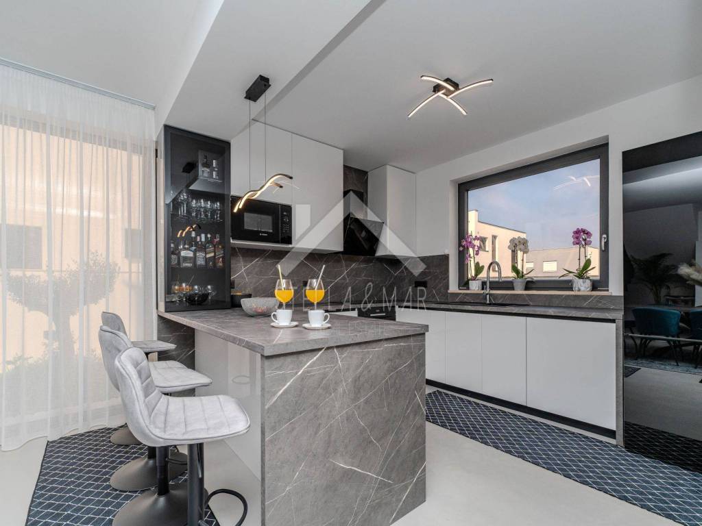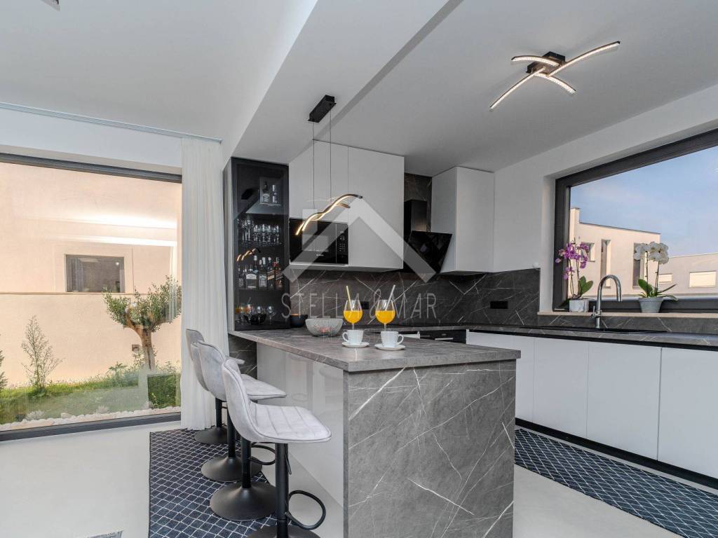 Luxusvilla mit Pool zum Verkauf in Privlaka in der Nähe von Zadar. Gebaut im Jahr 2024. Auf der Grundstücksfläche von 359 m2 beträgt die Wohnfläche des Gebäudes 198,80 m2. Das Haus ist geräumig und bietet einen herrlichen Blick auf das Meer, Velebit und die Insel Vir.