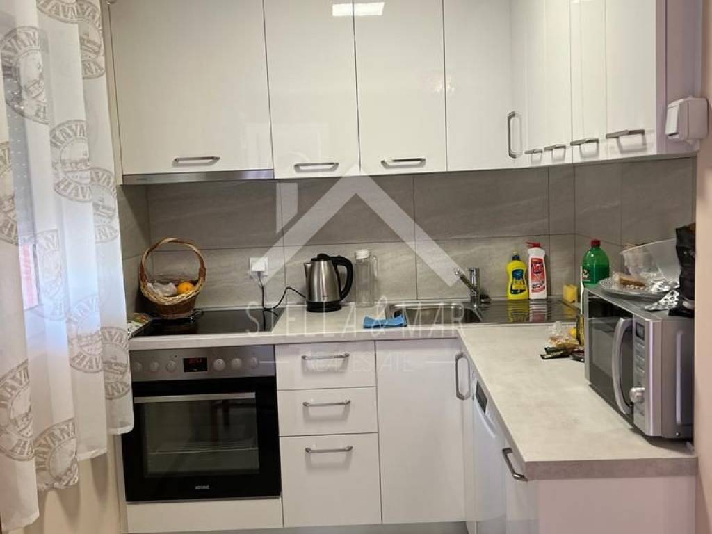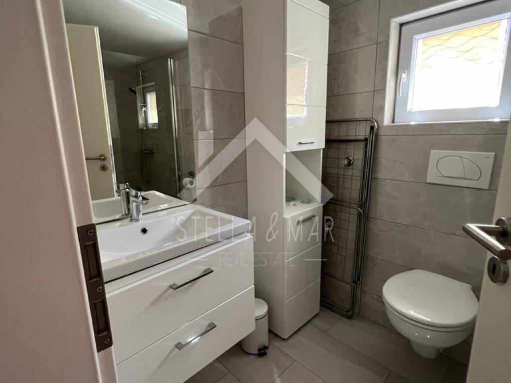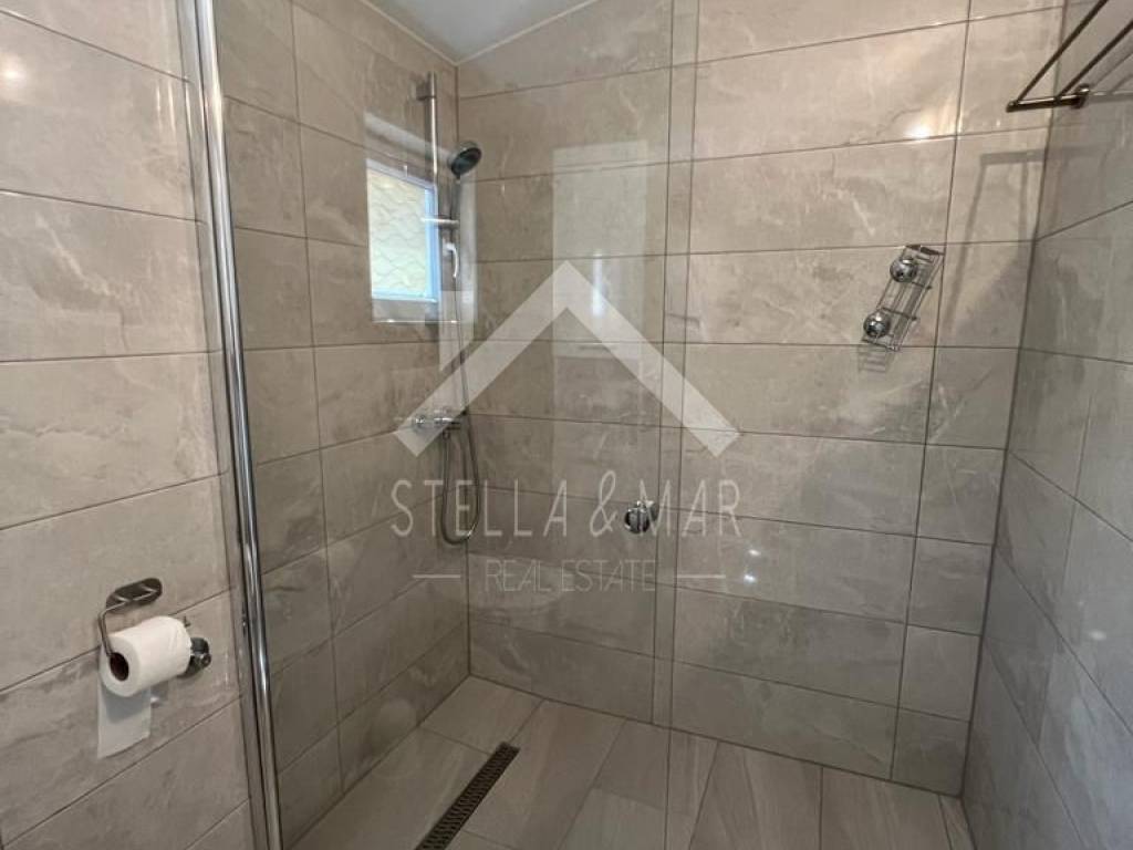 Das Haus befindet sich auf einem Grundstück von 182m2 und besteht aus einem Erdgeschoss und einem Obergeschoss. Im Erdgeschoss befindet sich eine Wohnung mit einem Wohnzimmer, einer Küche, zwei Schlafzimmern, einem Badezimmer und einer überdachten Terrasse.