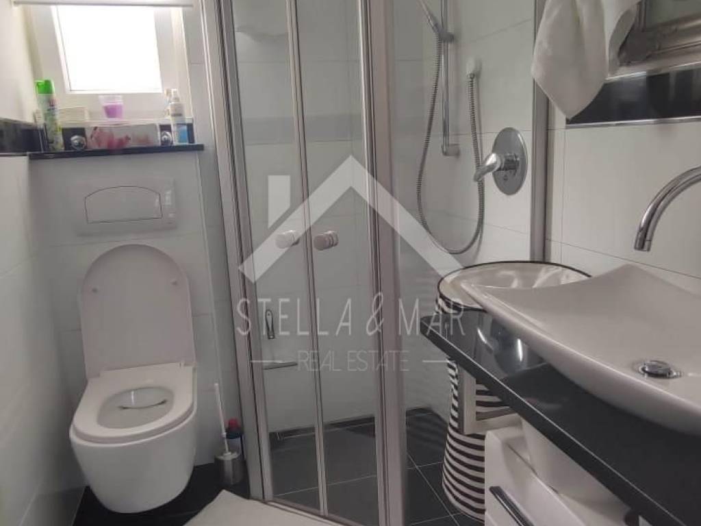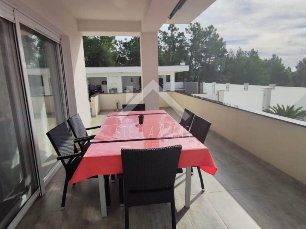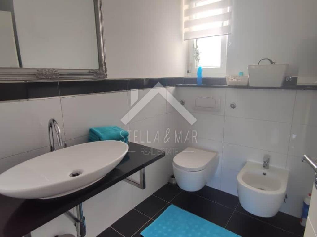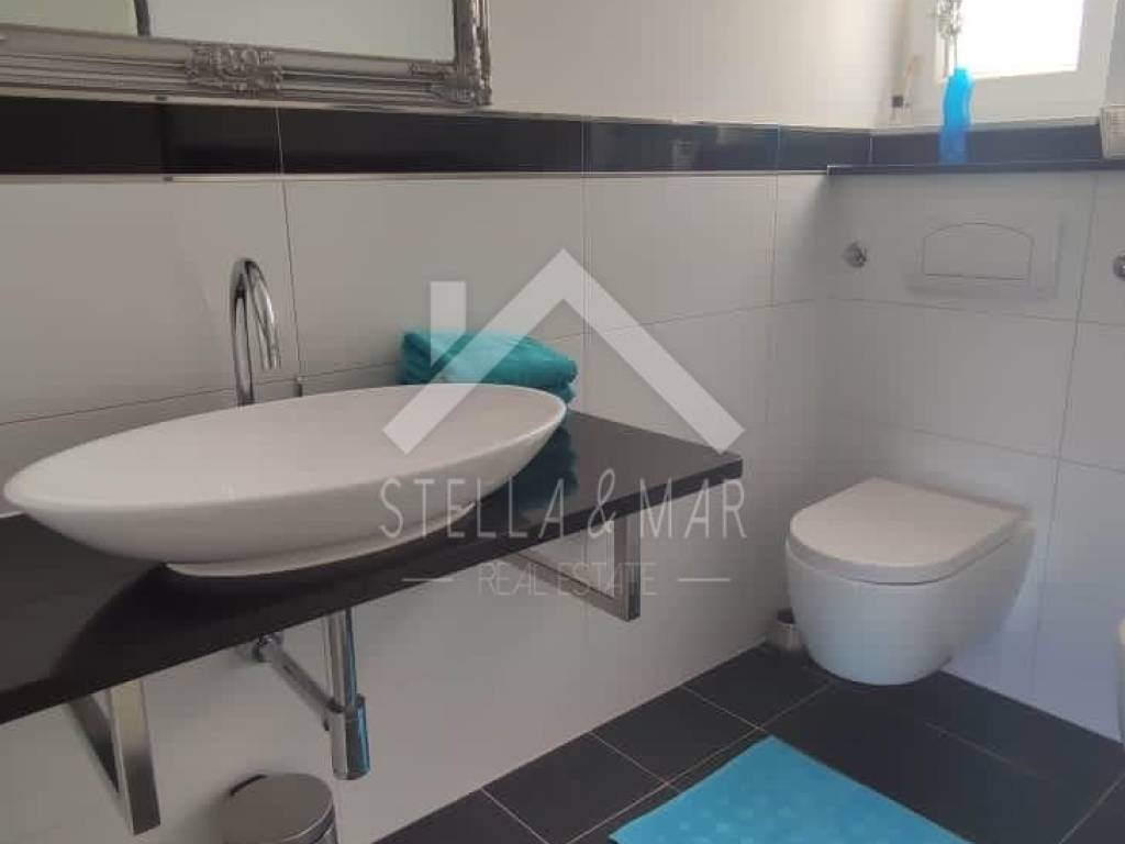 Im ersten Stock befinden sich zwei Apartments mit einem Schlafzimmer, jedes mit eigener Terrasse. Alle Apartments sind voll möbliert und ausgestattet. Es gibt Vorbereitungen für eine zentrale Fußbodenheizung, eine Klimaanlage sowie eine Wohnung im Erdgeschoss und einen Holzofen. Im Keller gibt es Stauraum und andere Einrichtungen, die für das Funktionieren dieses Luxushauses benötigt werden.