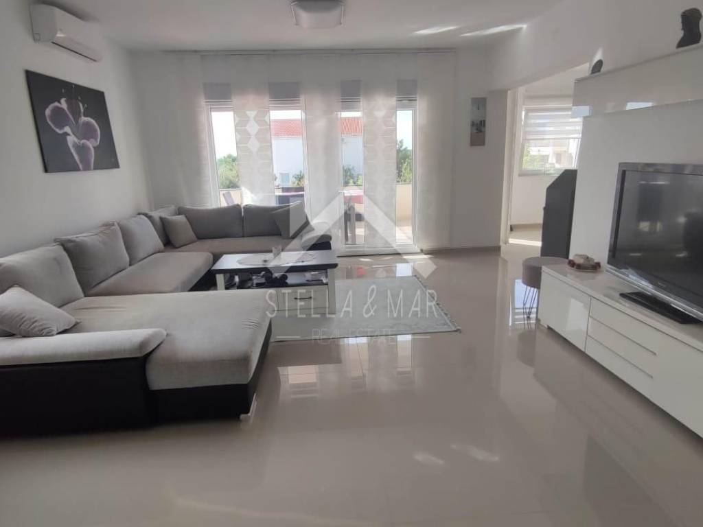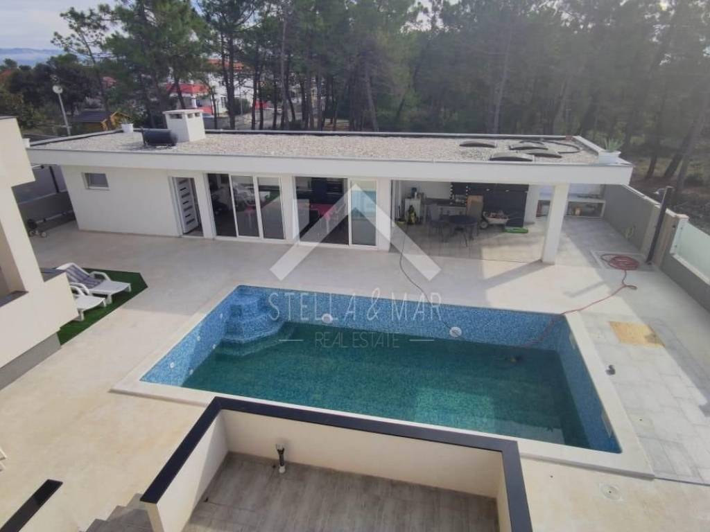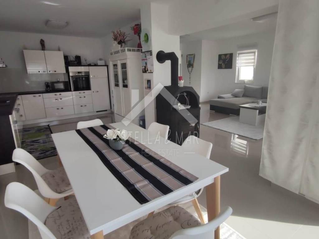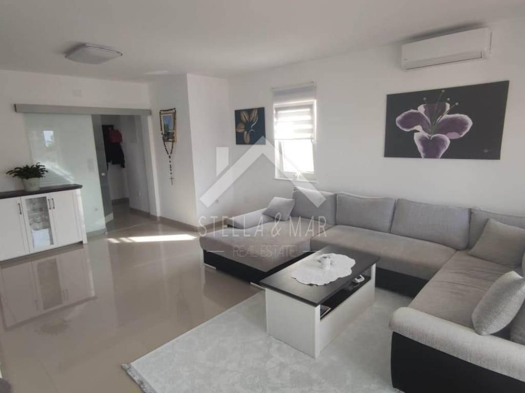 Im ersten Stock befinden sich zwei Apartments mit einem Schlafzimmer, jedes mit eigener Terrasse. Alle Apartments sind voll möbliert und ausgestattet. Es gibt Vorbereitungen für eine zentrale Fußbodenheizung, eine Klimaanlage sowie eine Wohnung im Erdgeschoss und einen Holzofen. Im Keller gibt es Stauraum und andere Einrichtungen, die für das Funktionieren dieses Luxushauses benötigt werden.
