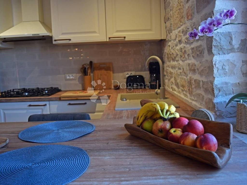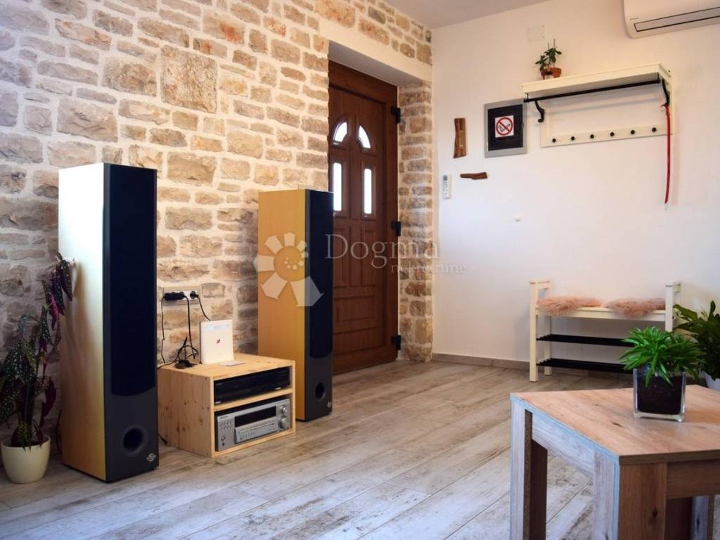 Zum Verkauf steht ein wunderschönes Reihenhaus aus Stein mit einer Fläche von 80m2, das eine authentische Kombination aus rustikalem Charme und traditionellem Design darstellt. Im Erdgeschoss gibt es eine Küche und ein Wohnzimmer, eine Toilette und einen Abstellraum unter der Treppe. Im ersten Stock befinden sich zwei Schlafzimmer und ein Badezimmer. Das Hauptschlafzimmer öffnet sich auf einen Balkon mit Blick auf eine ruhige Sackgasse.