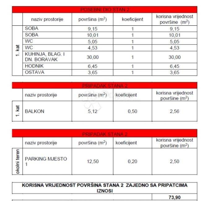 Zum Verkauf steht eine Wohnung im ersten Stock eines Neubaus unterhalb der Hauptstraße in einem ruhigen Viertel von Kaštel Gomilica. Die Gesamtfläche der Wohnung beträgt 73,9 m und besteht aus einem geräumigen Wohnzimmer, Esszimmer und Küche, die eine zusammenhängende Einheit von 30 m bilden, zwei Schlafzimmern, Flur, Badezimmer, Gäste-WC und Balkon. Zur Wohnung gehört außerdem ein im Preis inbegriffener Parkplatz. Die Wohnung ist modern gestaltet, funktional aufgeteilt und ideal für das Familienleben, aber auch als Kapitalanlage zur Miete. Sie befindet sich in einem Neubau in der Nähe aller wichtigen Einrichtungen unterhalb der Hauptstraße. Die Fertigstellung ist für Juni 2026 geplant. Alle Roharbeiten und Installationen sind abgeschlossen, die Fassaden- und Innenputzarbeiten werden derzeit durchgeführt. Im Preis der Wohnung sind außerdem Klimaanlage und Fußbodenheizung sowie ein Einbau-WC und ein Badezimmer enthalten, jedoch ohne Möbel. Die Eigentumsverhältnisse sind in Ordnung. Weitere Informationen oder ein Besichtigungstermin sind auf Anfrage erhältlich.