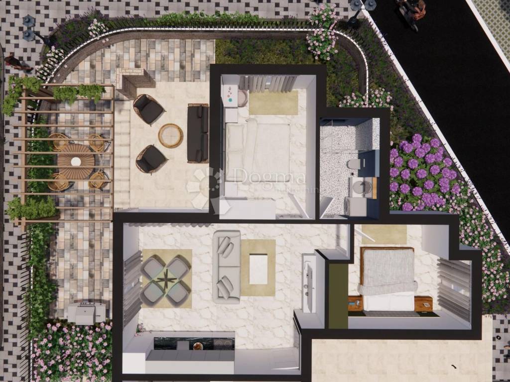 Willkommen in der einzigartigen Wohnanlage Prestige Residences Brodarica bei Šibenik, wo Luxus auf Natur trifft und der Alltag zu einem echten mediterranen Erlebnis wird. Umgeben von üppigem Grün, sorgfältig gestalteten Gärten und ruhigen Grünflächen genießen die Bewohner Harmonie und Ruhe, während das kristallklare Meer nur wenige Gehminuten entfernt ist.