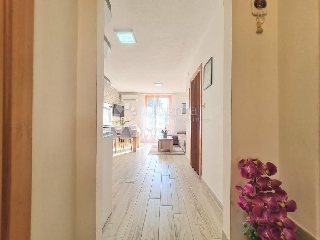 Különleges értéket kölcsönöz neki a földszinten található, tengerre néző loggia, amely ideális reggeli kávézáshoz vagy esti pihenéshez. Ezenkívül a tulajdonosok rendelkezésére áll egy kis kert az épület előtt, amely tökéletes a zöldövezetben való eltöltéshez vagy egy privát sarokhoz a szabadban.