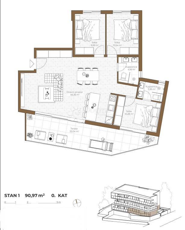 Wir präsentieren Ihnen eine exklusive Gelegenheit, eine Wohnung in einem modernen Neubau mit nur 6 Wohneinheiten zu kaufen, in hervorragender Lage nur die zweite Reihe vom Meer entfernt! Baubeginn: Herbst 2025. Geplante Fertigstellung: Sommer 2026. Grundriss und Flächen: Wohnfläche: 46,36 m Badezimmer 1: 3,36 m Badezimmer 2: 4,18 m Schlafzimmer 1: 9,99 m Schlafzimmer 2: 10,28 m Schlafzimmer 3: 10,54 m Terrasse: 25,04 m Gesamtfläche (P): 109,75 m Nettonutzfläche (Pk): 90,97 m Eingebaute Geräte und Materialien: Klimaanlage: Daikin höchste Effizienz und Komfort Sanitärkeramik: Hansgrohe und Geberit modernes Design und Zuverlässigkeit Fußbodenheizung: in den Badezimmern Keramik: Hochwertige italienische Keramik Böden: Eichenparkett der 1. Kategorie Tischlerei: Aluminium, energieeffizient und elegant Preis: auf Anfrage Interesse? Kontaktieren Sie uns für weitere Informationen, Grundrisse und Terminbuchung!