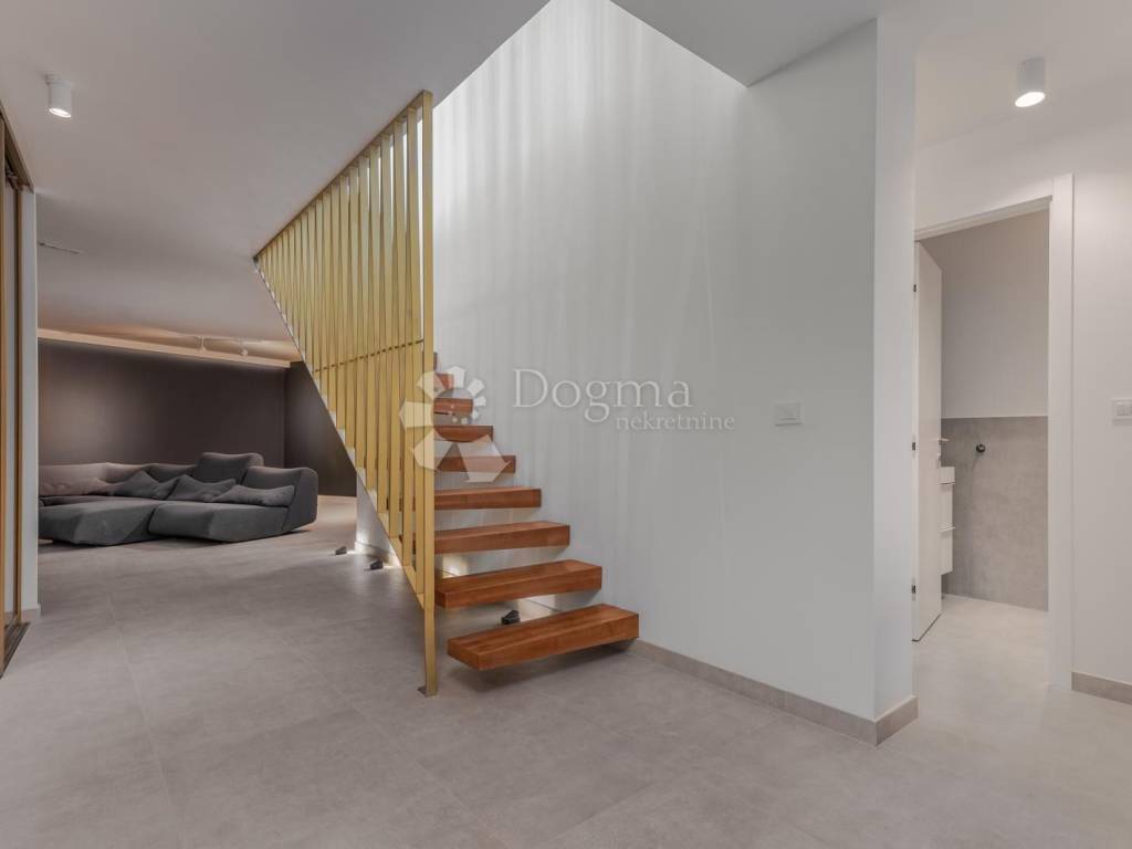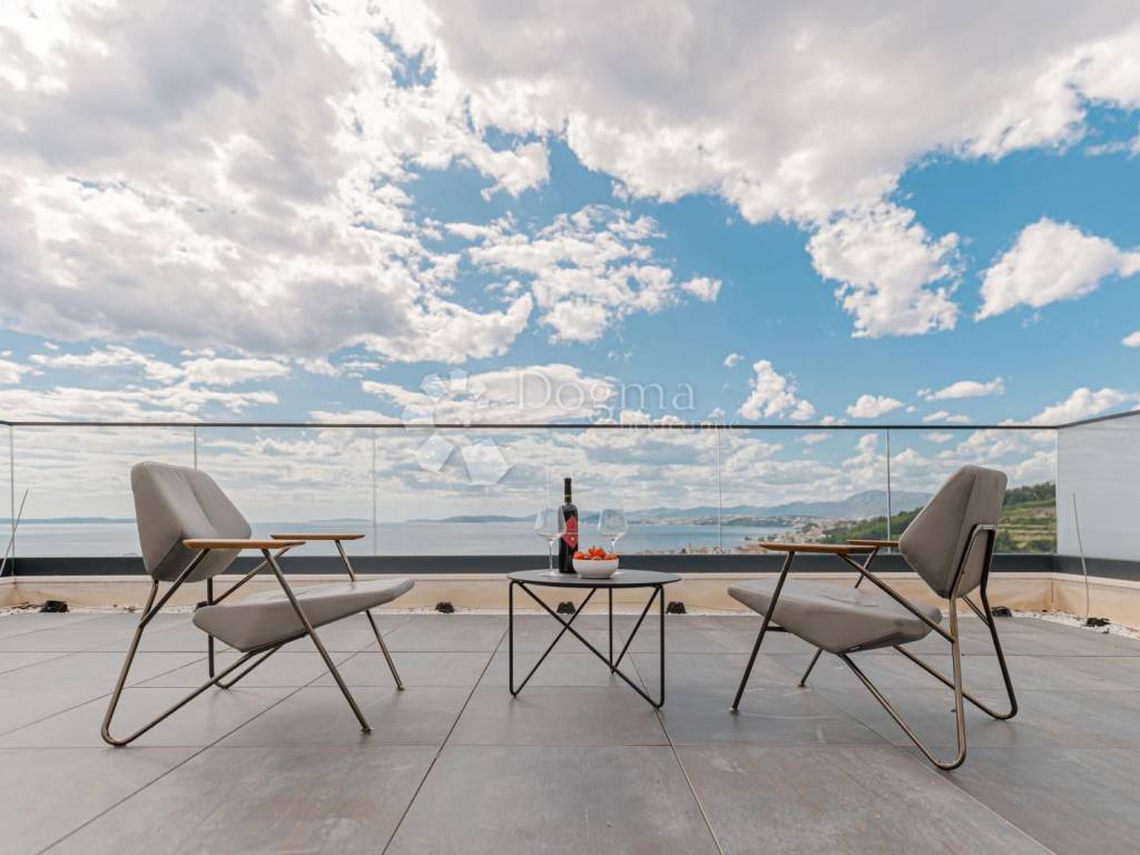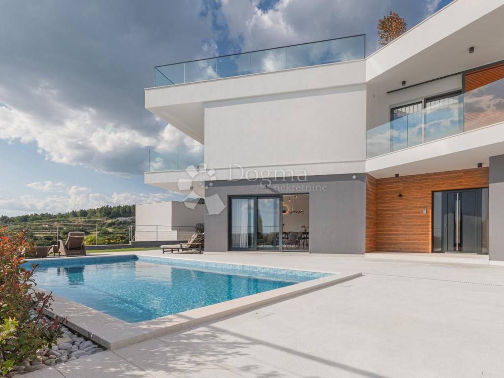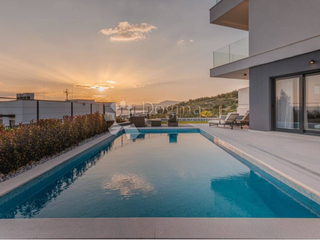 Eingebettet in die renommierte Luxusimmobilienzone von Podstrana, gleich außerhalb von Split, bietet diese elegante Villa eine seltene Kombination aus elegantem Wohnen, Panoramablick und Privatsphäre. Die Villa erstreckt sich über 333 m und drei wunderschön gestaltete Etagen, liegt nur 300 Meter vom Meer entfernt und in der Nähe aller wichtigen Annehmlichkeiten. Was diese Villa wirklich einzigartig macht, ist die exklusive Dachterrasse die einzige ihrer Art in der Gegend die einen atemberaubenden, unverbauten Blick auf die Adria und die Stadt Split bietet. Keine andere Villa in der Nähe bietet einen Dachzugang mit solch einem spektakulären Panorama.