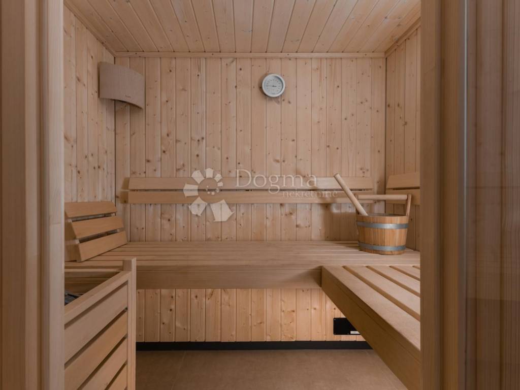 KELLER: Konzipiert für Freizeit und Wellness, verfügt es über einen Kinoraum, eine Sauna, einen Fitnessraum, eine Waschküche, ein Badezimmer und eine Gästetoilette.