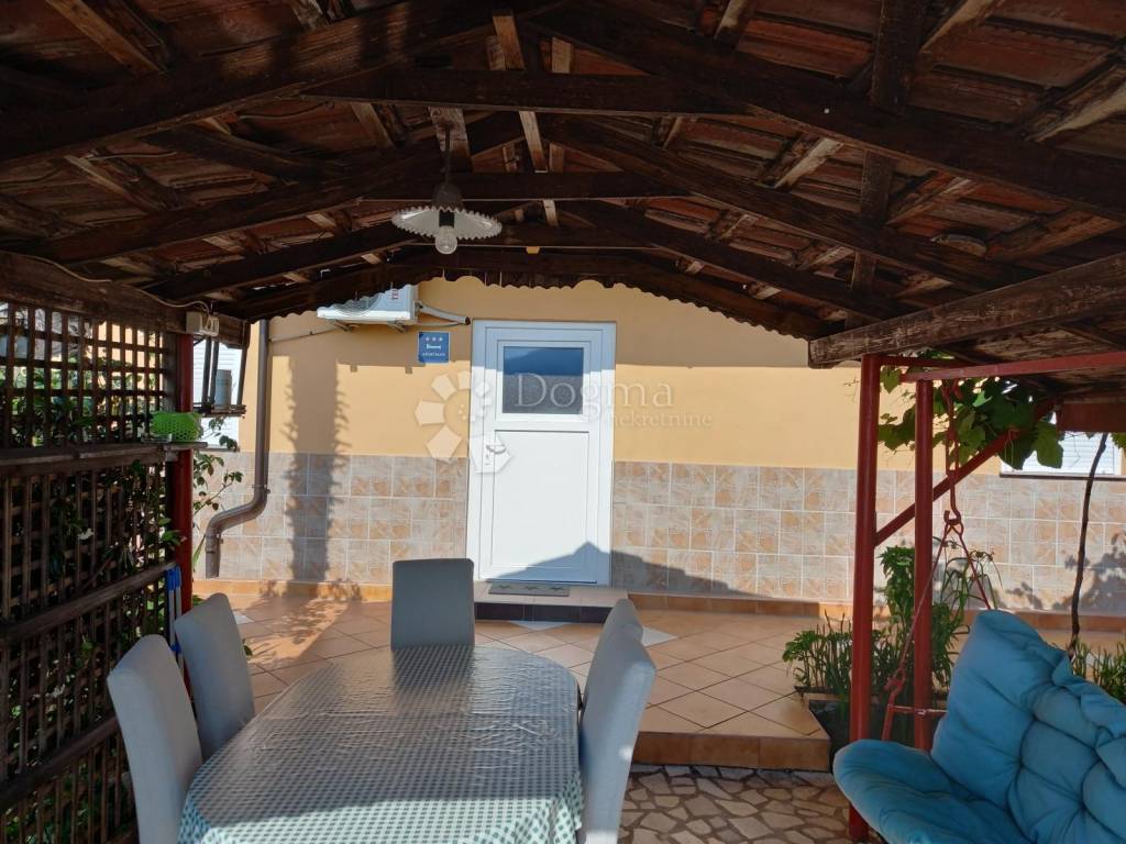 Es handelt sich um ein zweistöckiges Gebäude mit zwei separaten Wohnungen, zwei Tavernen und einem Garten mit Nebengebäuden.