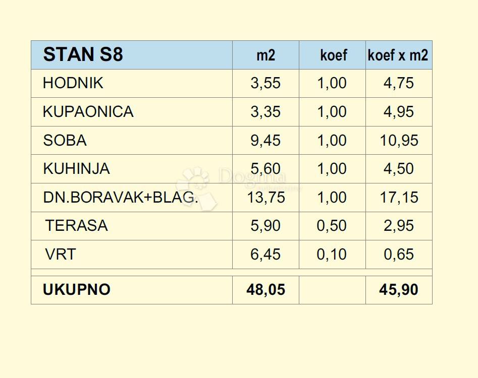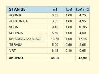 Zum Verkauf steht eine attraktive Ein-Schlafzimmer-Wohnung im Erdgeschoss eines modernen Neubaus in Makarska mit einer Nettofläche von 45,90 m. Diese funktional gestaltete Immobilie bietet den Komfort eines modernen Zuhauses mit einer Terrasse von 5,90 m und einem dazugehörigen Garten von 6,45 m ideal zum Entspannen, für gesellige Abende im Freien oder Ihre persönliche grüne Ruheoase.