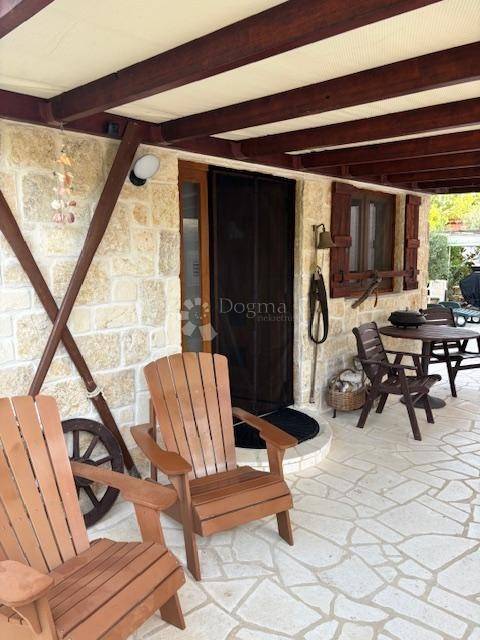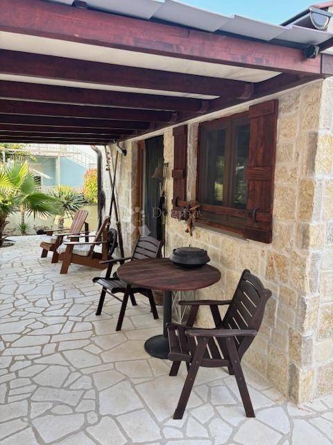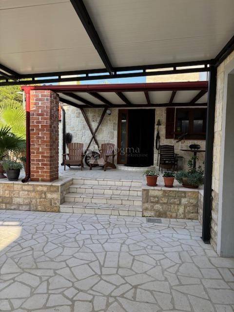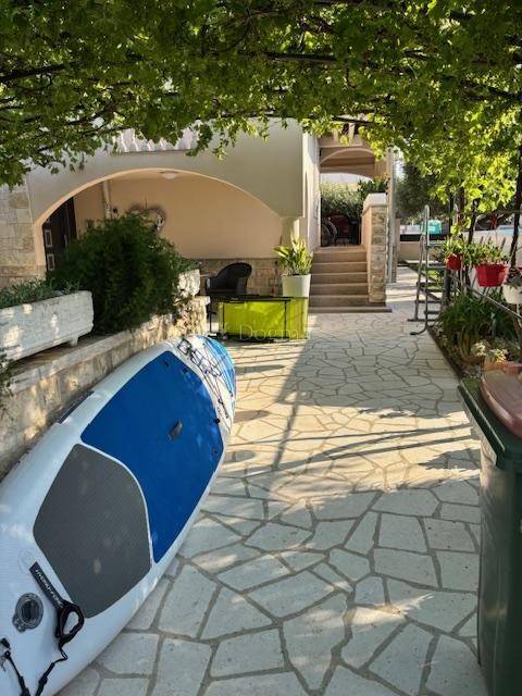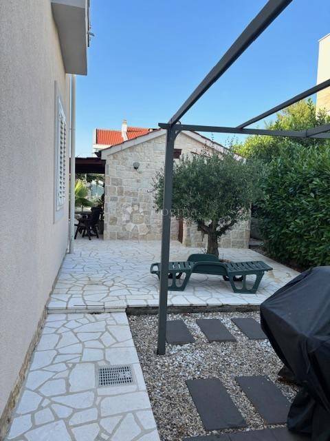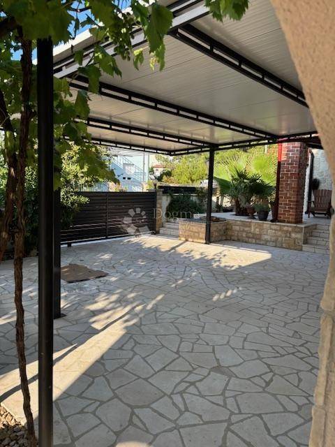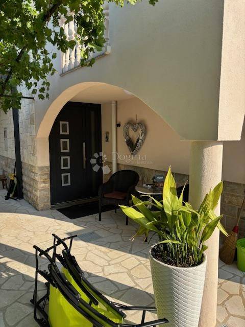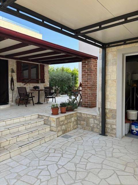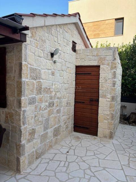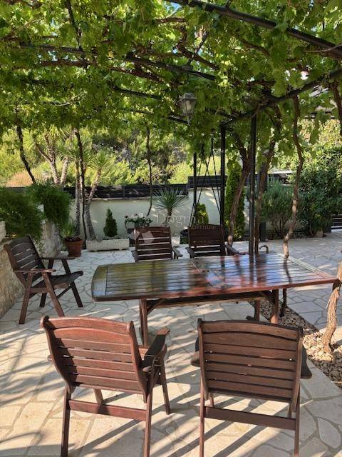 OBJEKTBESCHREIBUNG: Ein Haus bestehend aus zwei separaten Wohnungen, die durch eine Innentreppe verbunden sind, einer Garage und einem Keller. Im ersten Stock befindet sich eine geräumige und voll ausgestattete Wohnung mit drei Schlafzimmern, einem Badezimmer, einem großen Wohnzimmer, einer Küche und einer Terrasse mit Meerblick. Im Erdgeschoss befindet sich eine kleinere Wohnung mit zwei Schlafzimmern, einem Badezimmer, einer zusätzlichen Toilette, einem Wohnzimmer, einer Küche und einer Terrasse. Im Garten gibt es ein Nebengebäude von ca. 30 m mit einer traditionellen Peka, einem Grill und einem Raum für geselliges Beisammensein. Der geräumige Hof bietet die Möglichkeit, einen Garten anzulegen, einen Swimmingpool zu bauen oder nach Wunsch andere Einrichtungen hinzuzufügen.