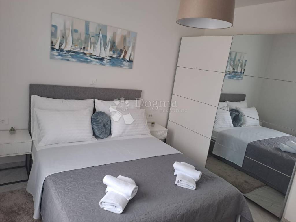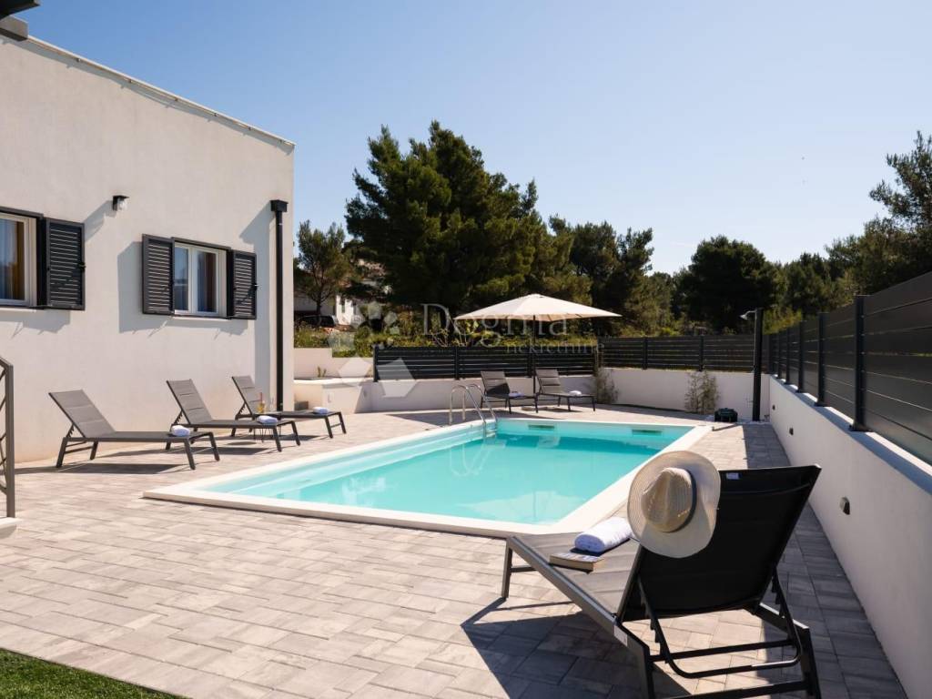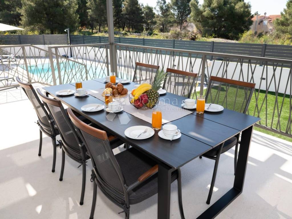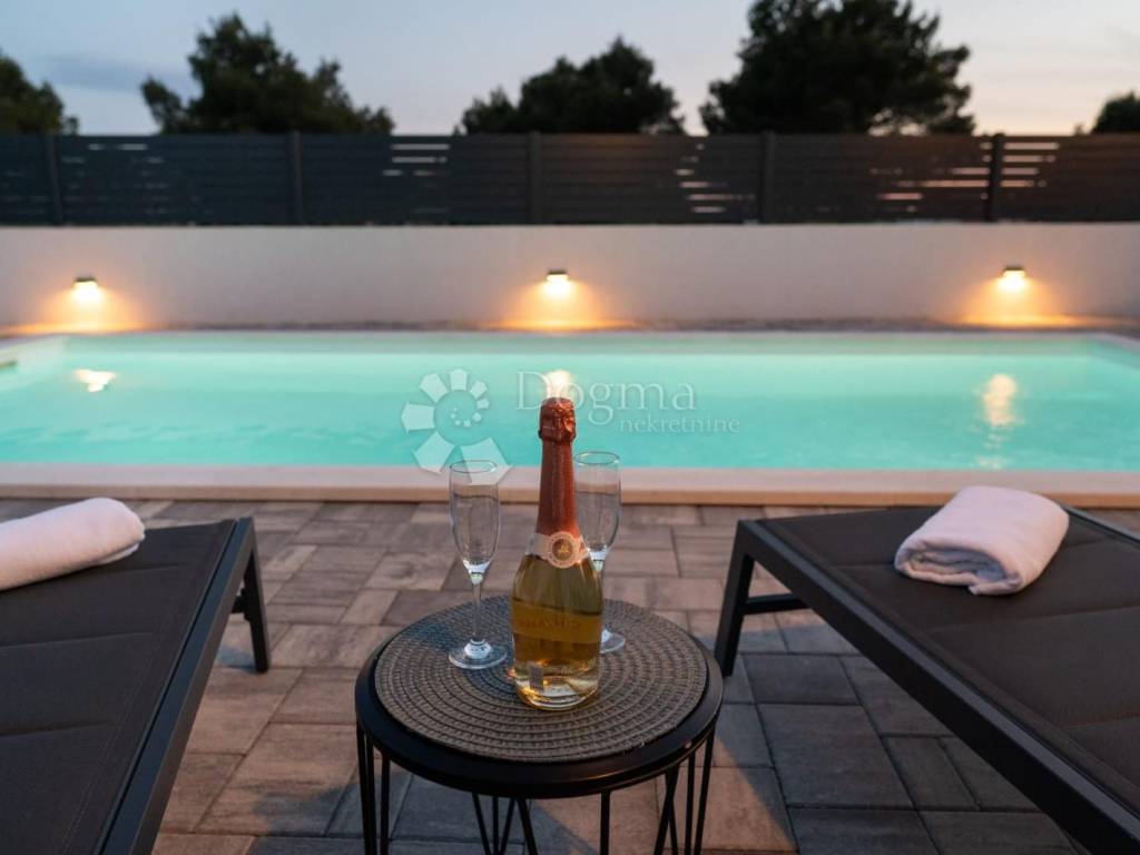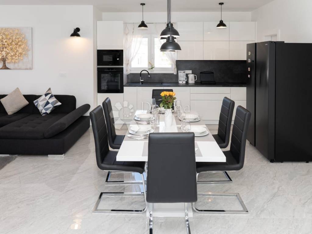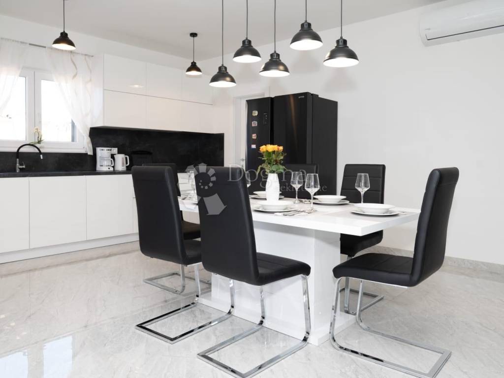 Neu gebautes und voll ausgestattetes Haus zum Verkauf in einem ruhigen Teil von Vodice, nur 1000 m vom Zentrum und dem Strand entfernt. Vodice liegt 12 km westlich von Šibenik und in idealer Lage im Zentrum der Adriaküste und bietet alle Einrichtungen für einen unvergesslichen und aktiven Urlaub. Das Haus liegt auf einem Grundstück von 629m2, es verfügt über 164m2. Es besteht aus einem Erdgeschoss und einem Keller. Im Erdgeschoss gibt es ein modernes und geräumiges Wohnzimmer mit Küche, Esszimmer und Wohnzimmer, drei komfortable Schlafzimmer und zwei Badezimmer. Alles ist mit hochwertigen Möbeln ausgestattet. Ein weiterer Vorteil ist der Keller ein offener Raum, den der neue Eigentümer nach Wunsch gestalten kann (z. B. Wellness, Fitnessstudio, Hobbybereich oder Taverne). Eine besondere Attraktion ist die bis zu 123 m große Dachterrasse, die einen herrlichen Panoramablick auf Vodice und die Umgebung bietet perfekt, um Sommerabende zu genießen. Der 433 m große Garten bietet einen Swimmingpool (32 m) mit Sonnendeck, Grill und fünf Parkplätzen. Aufgrund seiner attraktiven Lage, der hochwertigen Ausstattung und des modernen Designs sowie der Nähe zu allen lebensnotwendigen Annehmlichkeiten ist es eine ideale Immobilie für die touristische Vermietung. Für weitere Informationen und zur Vereinbarung einer Tour wenden Sie sich bitte an: Danijela Stojčinović +385989206268 danijela.stojcinovic@dogma-nekretnine.com Lassen Sie sich die Gelegenheit nicht entgehen