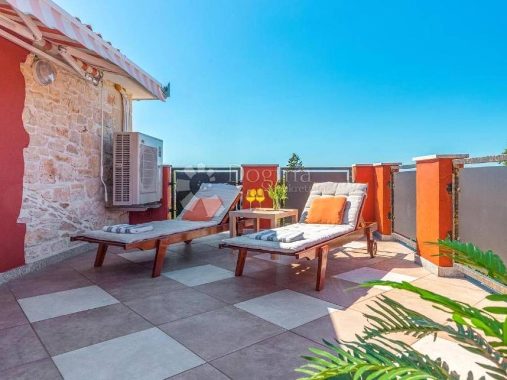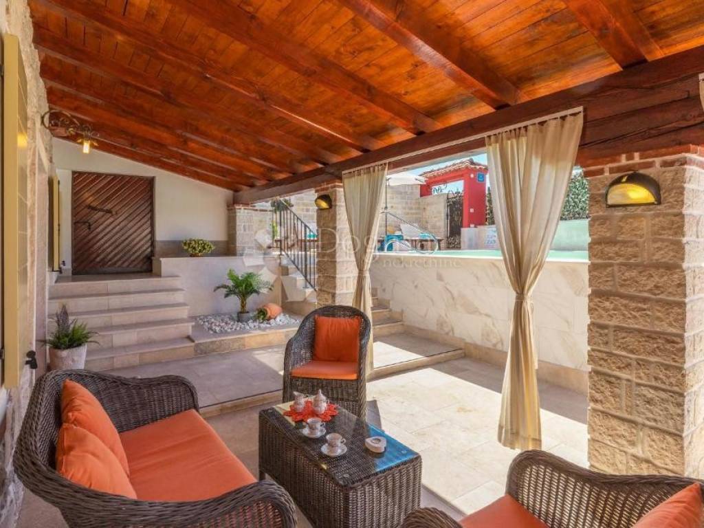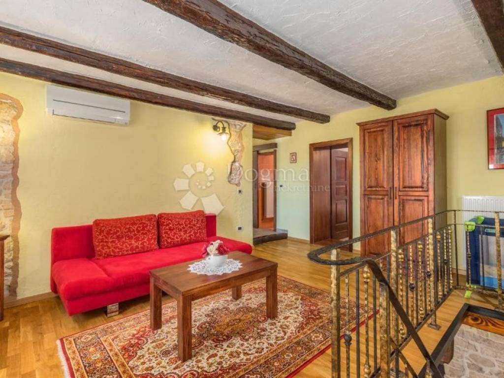 Istrischer Komplex mit einer Villa und einem Apartmenthaus mit Meerblick Kaštel bei Buje. Im ruhigen Kaštel gelegen, nicht weit von der historischen Stadt Buje und nur wenige Autominuten vom berühmten Strand Kanegra entfernt, bietet dieser Komplex ein authentisches istrisches Ambiente, Ruhe und Privatsphäre sowie einen unverbauten Meerblick. Auf einem großzügigen Grundstück von 1570 m befinden sich zwei separate Gebäude eine renovierte istrische Villa mit Swimmingpool und ein Apartmenthaus mit drei Wohneinheiten. Die Villa mit Swimmingpool (2010 renoviert) bewahrt den ursprünglichen istrischen Stil und bietet: - Erdgeschoss mit zwei Bädern, einem geräumigen Wohnzimmer und Küche - Erster Stock mit Galerie, drei geräumigen Schlafzimmern, einer Toilette und einer großen Terrasse mit offenem Meerblick - Im Hof gibt es eine überdachte Terrasse, einen Swimmingpool und einen separaten Fitnessbereich Das Apartmenthaus ist in drei Wohnungen aufgeteilt: 1. Wohnung im Erdgeschoss Esszimmer, Küche, Wohnzimmer, Schlafzimmer und Badezimmer, als Geschäftsräume registriert 2. Wohnung im ersten Stock (104 m) offene Küche, Esszimmer und Wohnzimmer mit Zugang zu einem Balkon und Panoramablick auf das Meer und die Salinen, drei Schlafzimmer, Badezimmer und zusätzliche Toilette 3. Wohnung im Dachgeschoss Wohnzimmer, Küche und Esszimmer in einem offenen Raumkonzept, zwei Schlafzimmer, Badezimmer und Gästetoilette Im Hof gibt es eine Garage, Parkplätze für acht Autos und Einrichtungen für verschiedene Outdoor-Aktivitäten. Beide Gebäude sind an eine Gaszentralheizung angeschlossen und jede Wohnung verfügt über eine eigene Klimaanlage, was das ganze Jahr über einen angenehmen Aufenthalt ermöglicht. Dank der Nähe zur slowenischen Grenze, zu Italien und allen Schönheiten, die Istrien zu bieten hat von Gastronomie, Wein und Naturschönheiten bis hin zu kulturellen Attraktionen stellt diese Immobilie eine ideale Investitionsmöglichkeit dar. Preis: nur 1.300 pro m äußerst günstig für diese Objektart und Lage. Für alle weiteren Informationen und zur Vereinbarung eines Besichtigungstermins kontaktieren Sie uns bitte. STEFANO PERUŠKO LIZENZIERTER VERTRETER Mobil 099/721-0395 stefano.perusko@dogma-nekretnine.com KRISTINA BENČIĆ +385981923830