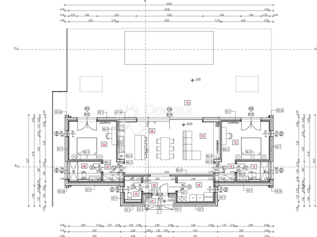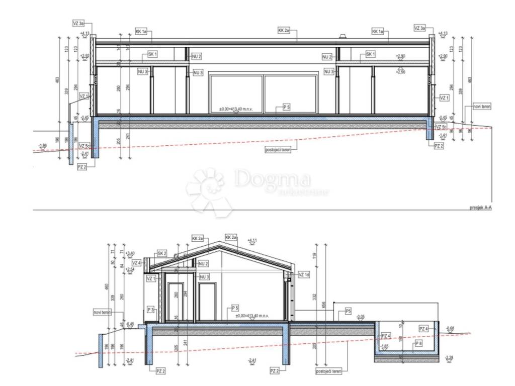 Zum Verkauf steht ein attraktives Baugrundstück mit einem Projekt und einer gültigen Baugenehmigung für den Bau eines modernen einstöckigen Hauses, ideal als Feriendomizil. Das Projekt sieht eine Anlage mit einer Gesamtfläche von 108 m vor, die den Anforderungen einer 4-Sterne-Kategorisierung entspricht und sich somit hervorragend als Investition für die touristische Vermietung oder private Nutzung eignet. Dieses sorgfältig gestaltete Haus besteht aus zwei geräumigen Schlafzimmern und einem großen offenen Bereich, in dem sich die Küche, das Esszimmer und das Wohnzimmer befinden. Die Räume sind hell und luftig, mit direktem Zugang vom Wohnzimmer und den Schlafzimmern zur Terrasse, die mit dem Pool verbunden ist. Die Terrasse ist der perfekte Ort zum Entspannen und Genießen der Ruhe und Privatsphäre dieses Ortes. Das Feld befindet sich in einer ruhigen und attraktiven Lage in der Nähe von Žminj, umgeben von Natur, die Intimität und Ruhe gewährleistet, und ist gleichzeitig gut an die Hauptstraßen und alle notwendigen Annehmlichkeiten angebunden. Die Größe des Grundstücks beträgt 850 m, was ausreichend Platz für zusätzliche Einrichtungen wie Gärten, Außengrill oder Kinderspielplatz bietet. Weitere Vorteile sind bereits installierte Wasser- und Stromanschlüsse auf dem Grundstück sowie eine gepflegte Zufahrtsstraße, die eine einfache Zufahrt zum Grundstück ermöglicht. Dieses Grundstück mit Projekt und Genehmigung stellt eine hervorragende Gelegenheit dar, Ihre Träume von einem eigenen Ferienhaus oder einer rentablen Investition im Tourismussektor zu verwirklichen.