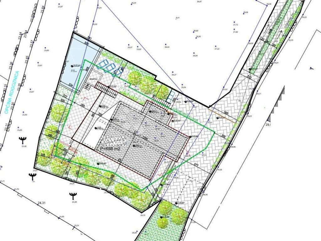 Der Hof der Villa wird durch eine Steinmauer eingezäunt, und es ist geplant, Bäume zu pflanzen, um zusätzliche Privatsphäre und eine bessere Atmosphäre zu gewährleisten. Die Villa und ihr Grundstück werden im mediterranen Stil gestaltet, der dem lokalen Klima entspricht.