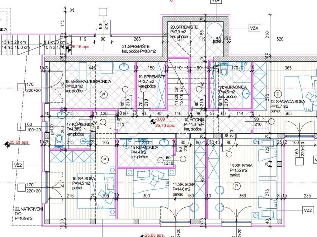 Die Gesamtfläche der Villa beträgt 250,44 m, mit einer Nettowohnfläche von insgesamt 230 m. Die Villa wird auf einem Grundstück von 698 m errichtet.