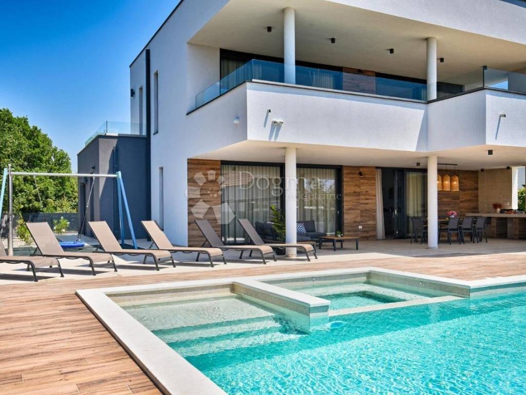 Im idyllischen Viertel von Peroj, nur 500 Meter von der Küste entfernt, steht diese beeindruckende Villa mit einer großzügigen Fläche von 342 m. Diese luxuriöse Immobilie, die sich auf einem 719 m großen Grundstück befindet, kombiniert perfekt modernes Design und Komfort und bietet idealen Raum für das Familienleben oder zur Entspannung in einem Urlaubsambiente.