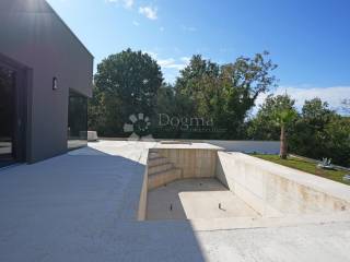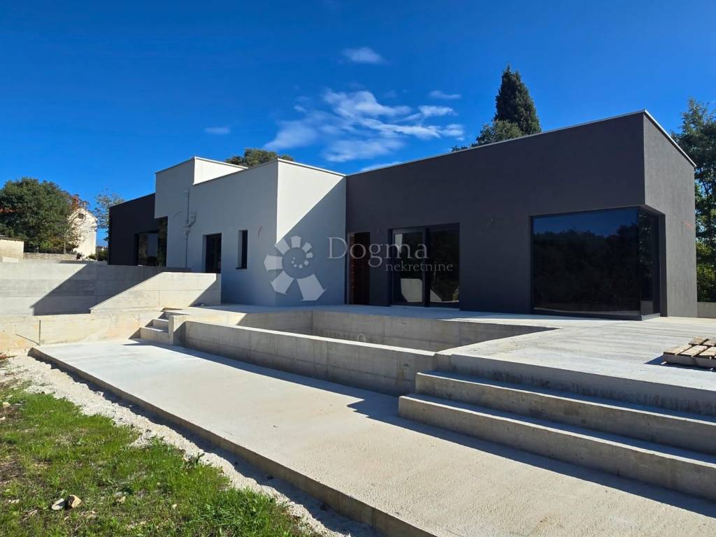 Das geplante Haus in Barban ist modern gestaltet und befindet sich derzeit im Bau. Die Wohnfläche beträgt 82 m, und das Haus steht auf einem 350 m großen Grundstück, das ausreichend Platz für ein komfortables Wohnen und Aktivitäten im Freien bietet.