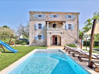 Die Villa verfügt über einen großen Swimmingpool mit Liegestühlen, einen Kinderspielplatz und einen großzügigen, wunderschön gepflegten traditionellen istrischen Garten.