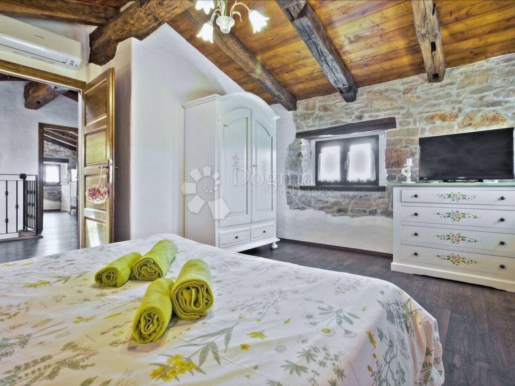 Im unteren Teil des Hauses befindet sich eine schöne istrische Taverne mit einer Küche zur Zubereitung lokaler Köstlichkeiten. Auf dieser Ebene befindet sich außerdem ein zusätzliches Schlafzimmer mit separatem Badezimmer, das Gästen Privatsphäre oder den Eigentümern zusätzlichen Komfort bietet.
