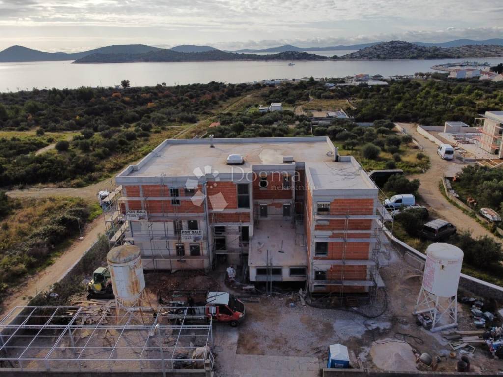 In dem schönen Ort Tribunj, nur 250 Meter vom Strand entfernt, befindet sich diese geräumige Wohnung im zweite Stock eines Wohngebäudes mit insgesamt sechs Einheiten. Mit einer Fläche von 100,24 Quadratmetern bietet diese Immobilie einen komfortablen und modernen Wohnraum Mit einem wunderschönen Meerblick.