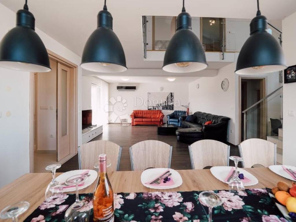 Diese atemberaubende Immobilie erstreckt sich über 235 m und umfasst ein Erdgeschoss sowie zwei obere Etagen. Im Erdgeschoss (84 m) finden Sie eine Garage, eine Waschküche, einen Abstellraum, eine Toilette, eine Terrasse und eine Sommerküche. Der erste Stock (75 m) bietet den Komfort einer Küche, eines Essbereichs mit einem geräumigen Wohnzimmer, eines Badezimmers und zwei Terrassen. Im zweiten Stock (78 m) befinden sich vier Schlafzimmer, ein Badezimmer und zwei Terrassen mit magischem Blick auf das Meer und die malerische Stadt Zadar.