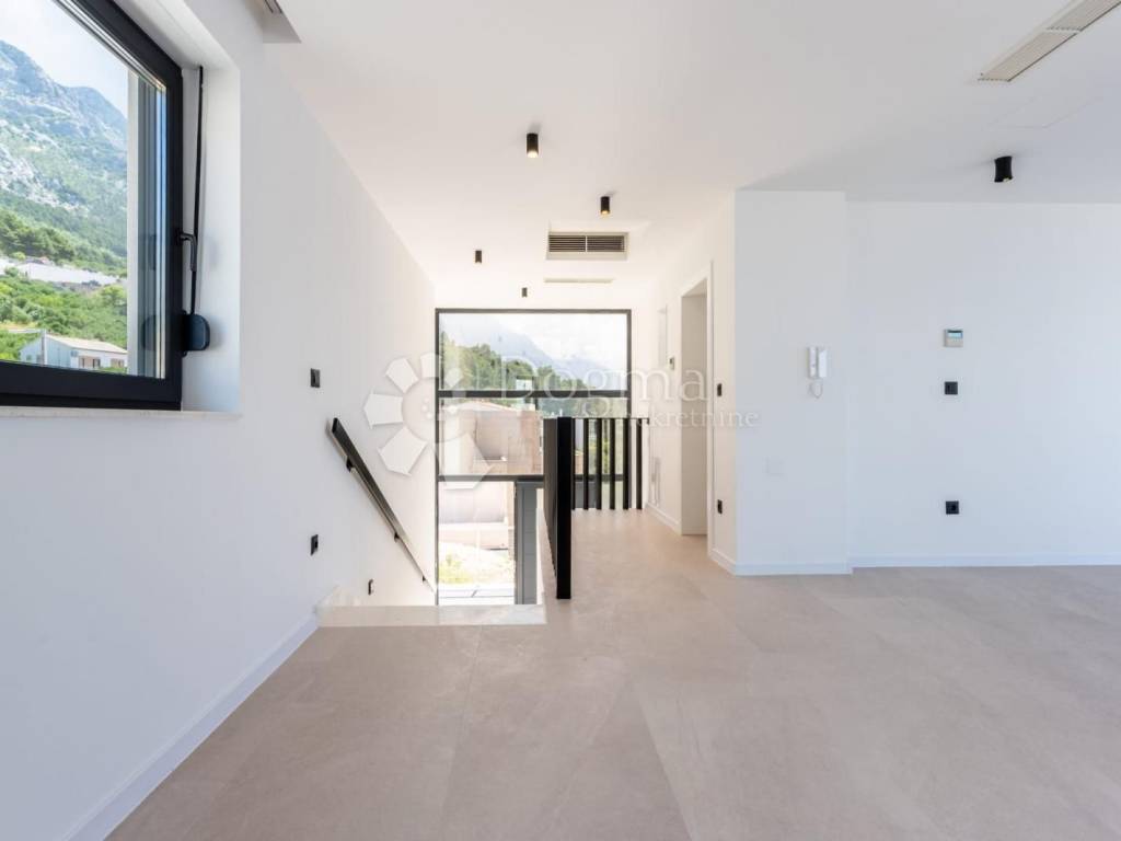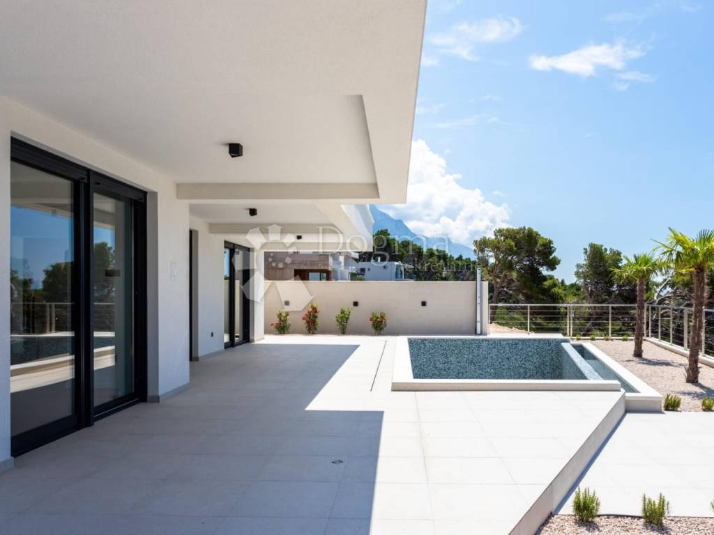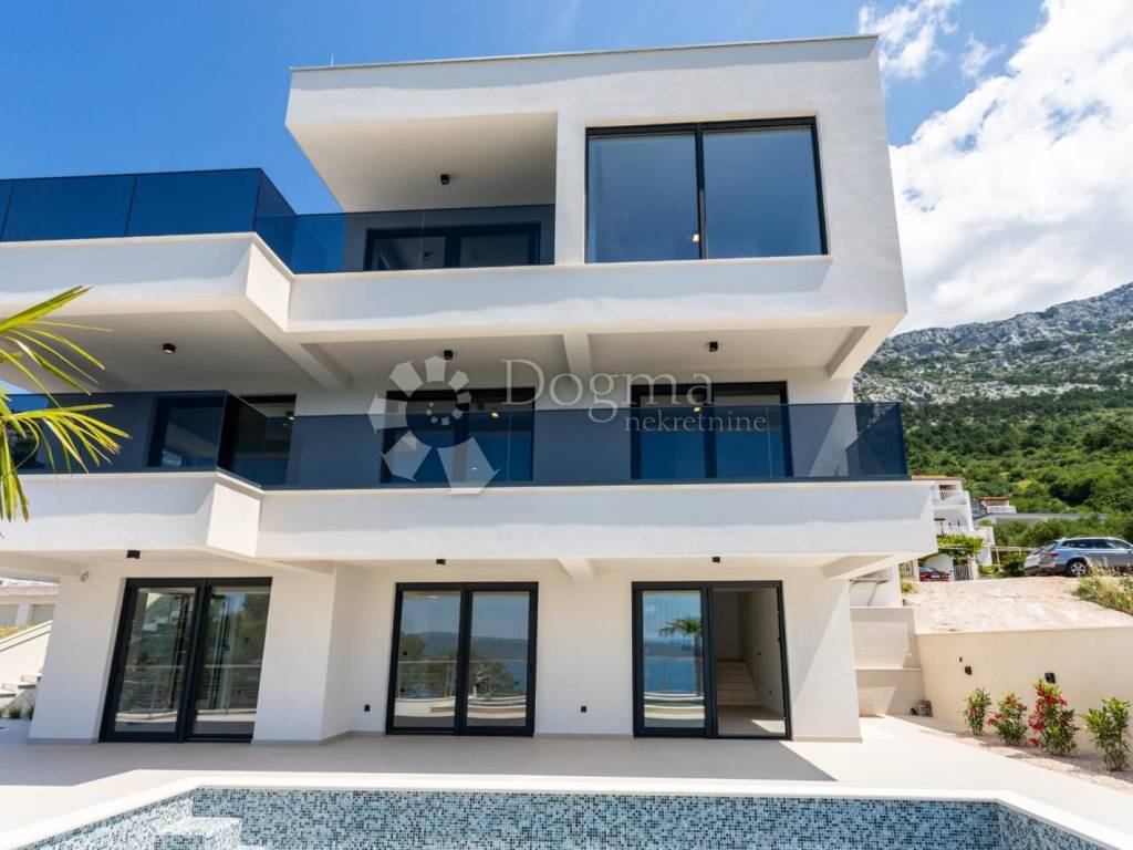 Eine moderne Villa in Brela mit schöner Aussicht und Swimmingpool, Dieses imposante Anwesen umfasst eine Gesamtfläche von 317 m2 auf einem großzügigen Grundstück von 515 m2. Die Villa besteht aus einem Keller, Erdgeschoss und erstem Stock. Im ersten Stock befindet sich eine eigenständige Wohneinheit ein Penthouse von 104,80 m2. Dieser schöne Raum besteht aus einer Küche, einem Esszimmer und einem Schlafzimmer mit eigenem Bad und einer riesigen Terrasse, die Sie verzaubern und den Eindruck erwecken wird, als würden Sie im Weltraum schweben. Die zweite Wohneinheit erstreckt sich über zwei Etagen und besteht aus drei geräumigen Schlafzimmern mit jeweils eigenem Bad und einer Terrasse im Obergeschoss. Die untere Etage wird Sie mit einem geräumigen Wohnzimmer, einer Küche und einem Esszimmer begeistern, die sich bis zur Außenterrasse mit einem ca. 30 m großen Pool fortsetzen. Hier genießen Sie eine zauberhafte Umgebung und eine spektakuläre Aussicht aus allen Zimmern. Beide Wohneinheiten können zu einer kombiniert werden. Der größte Vorteil dieser Immobilie ist ihre unglaubliche Aussicht. Es wird Sie von jeder Ecke aus verzaubern und Ihnen die Ruhe und Privatsphäre bieten, die Sie verdienen. Darüber hinaus liegt die Villa ideal in unmittelbarer Nähe aller lebensnotwendigen Einrichtungen wie Kindergarten, Post, Schule, Einkaufsmöglichkeiten, Sportplätze und vielem mehr. Die Villa wird komplett möbliert verkauft. Eine außergewöhnliche Lage, die Ruhe garantiert, die Bauqualität und die Liebe zum Detail sowie das außergewöhnliche touristische Potenzial machen diese Immobilie äußerst begehrenswert. Lassen Sie sich die Gelegenheit nicht entgehen.