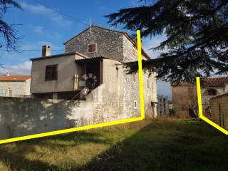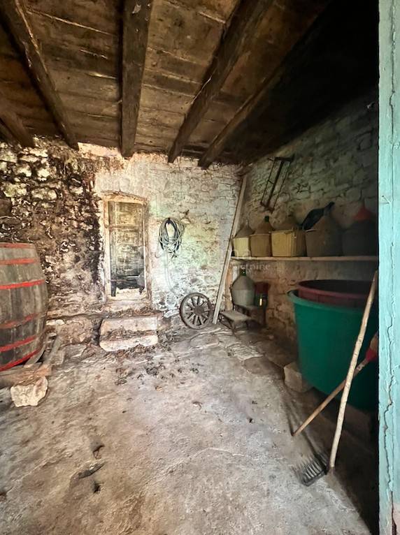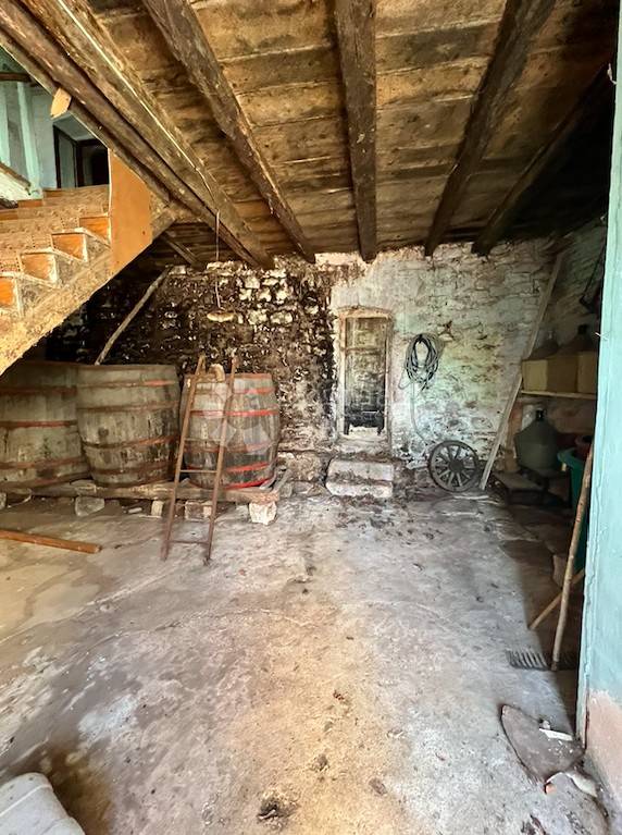 Es stehen zwei Häuser zum Verkauf, die renoviert werden müssen. Einer ist größer und der andere kleiner, und sie teilen sich einen schönen Garten.