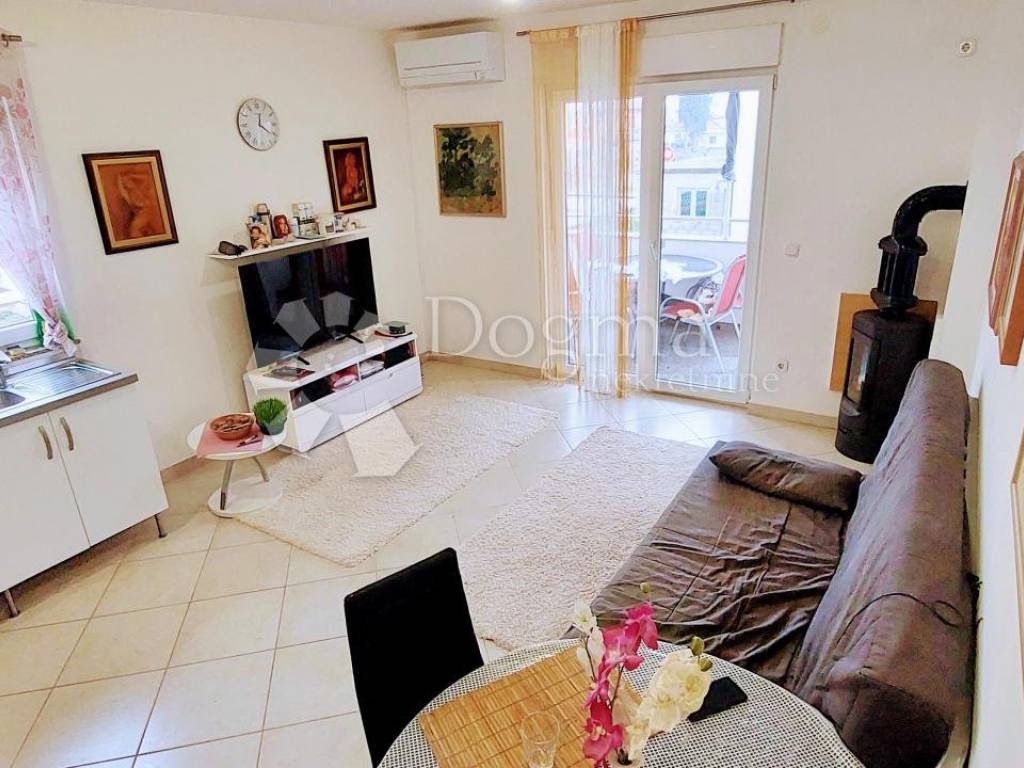 Die Wohnung befindet sich im ersten Stock und besteht aus einer Eingangshalle, einem Badezimmer, zwei schönen Schlafzimmern, einem Flur, einer Küche, einem Essbereich, einem Wohnzimmer und einer Terrasse. Die Wohnung, wie auf den Bildern zu sehen, befindet sich in einem neueren Haus mit insgesamt acht Wohnungen, Baujahr 2014, und wird seither penibel gepflegt. Die Heizung in der Wohnung erfolgt mit einer neuen Klimaanlage, es besteht aber auch die Möglichkeit mit Holz zu heizen. Die Fenster sind aus PVC mit Jalousien, in Flur, Küche, Wohnzimmer und Bad gibt es Fliesen, in den Zimmern ist Laminat. Die Wohnung wird möbliert verkauft, und mit der denkmalgeschützten Immobilie erhält der zukünftige Käufer auch einen Stellplatz im Garten. Das Gebäude verfügt über einen B-Energieausweis, der dem zukünftigen Eigentümer eine langjährige wirtschaftliche Nutzung garantiert. Zur Wohnung gehört ein Abstellraum im Keller.